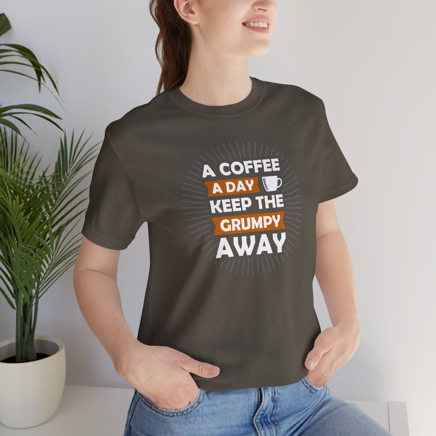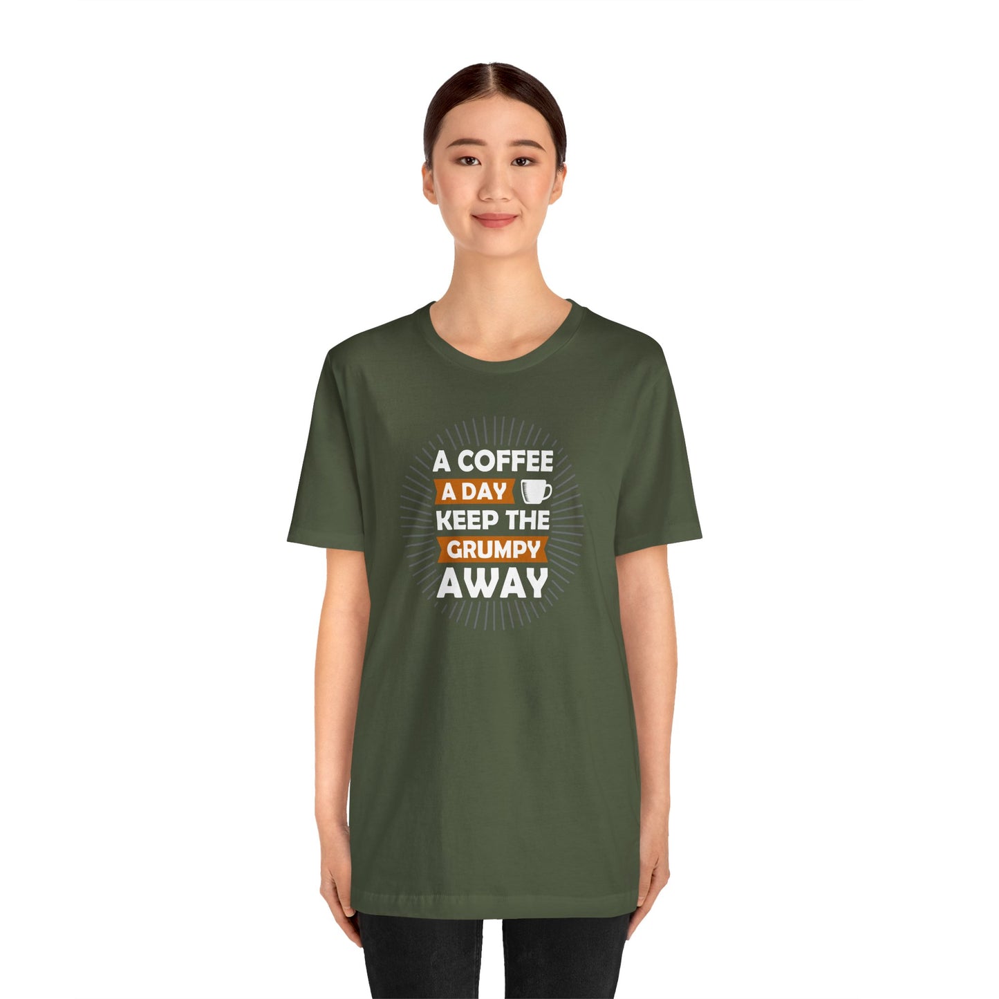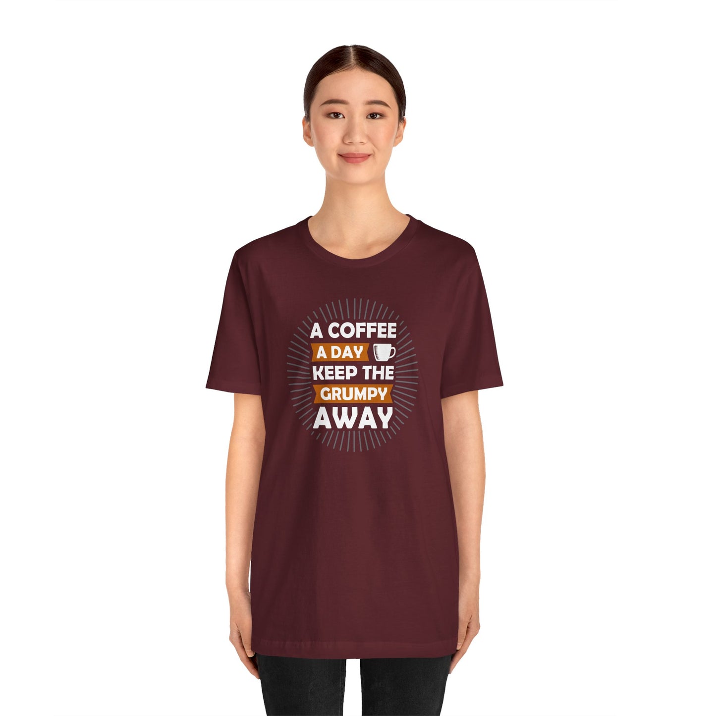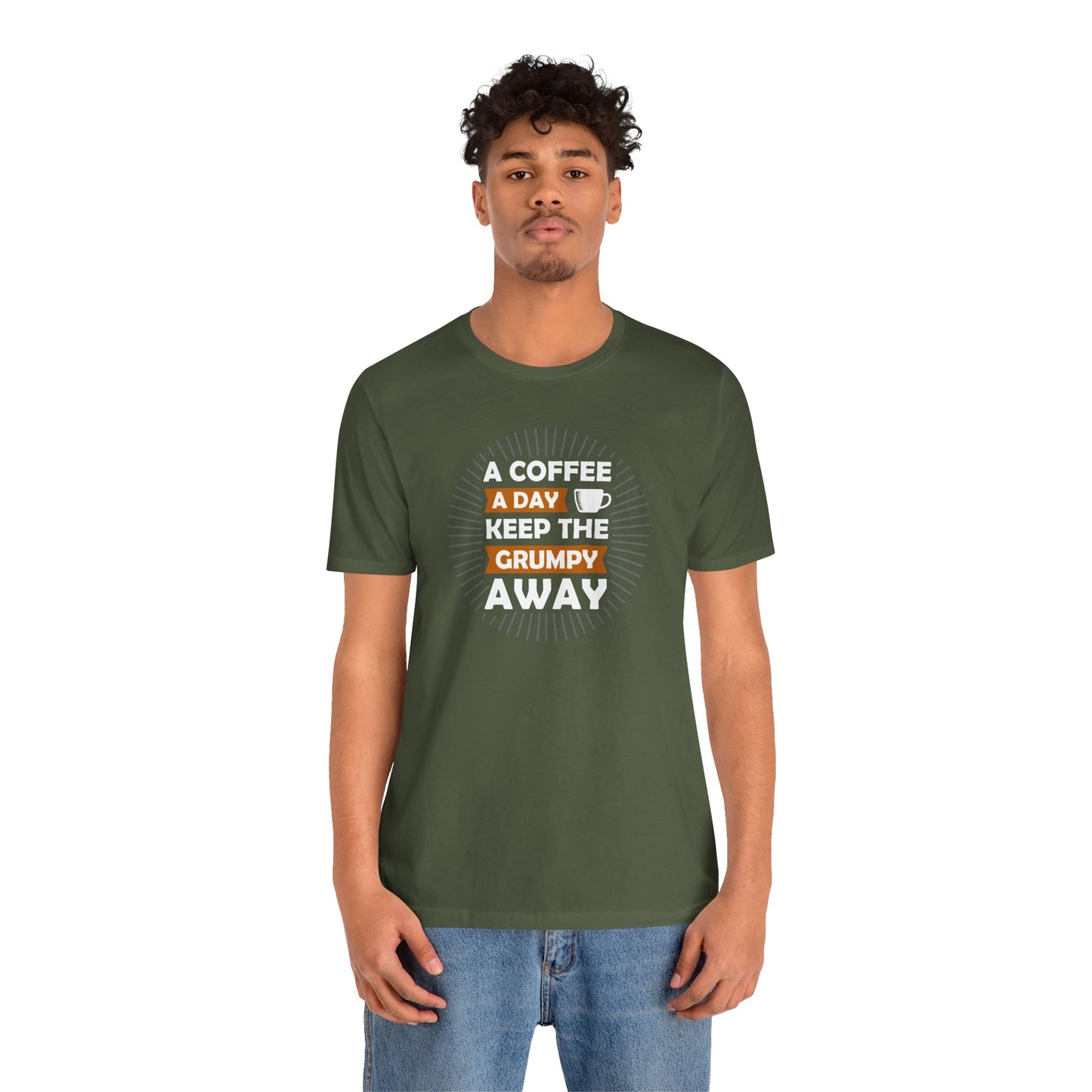 A Coffee A Day Keeps The Grumpy Away Unisex Jersey Short Sleeve Tee