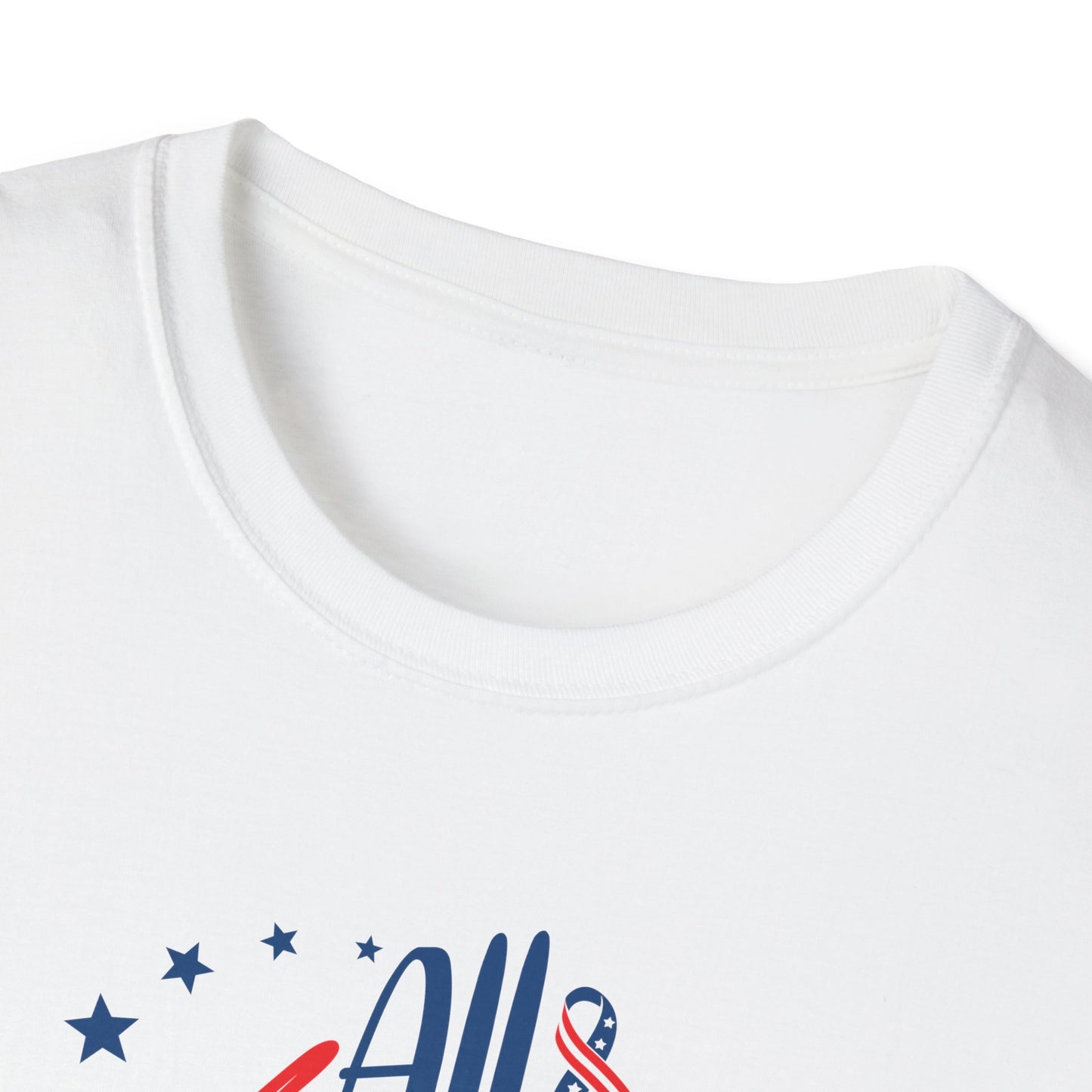 🎉 Patriotic Pride! This vibrant design features the phrase "All American Girl" in bold navy and red font, symbolizing patriotism and national pride. The text is adorned with a USA flag ribbon, adding a touch of unity and freedom. Above the text, five navy stars shine brightly, representing strength and unity. The background is filled with stars and stripes, echoing the iconic American flag. At the bottom, a pair of sunglasses completes the look, with each lens featuring a miniature US flag, blending patriotism with a fun and modern twist. Perfect for those who want to express their love for America with style and flair, this design combines national pride with a playful vibe. Grab yours now and let your patriotic spirit shine! 🌟