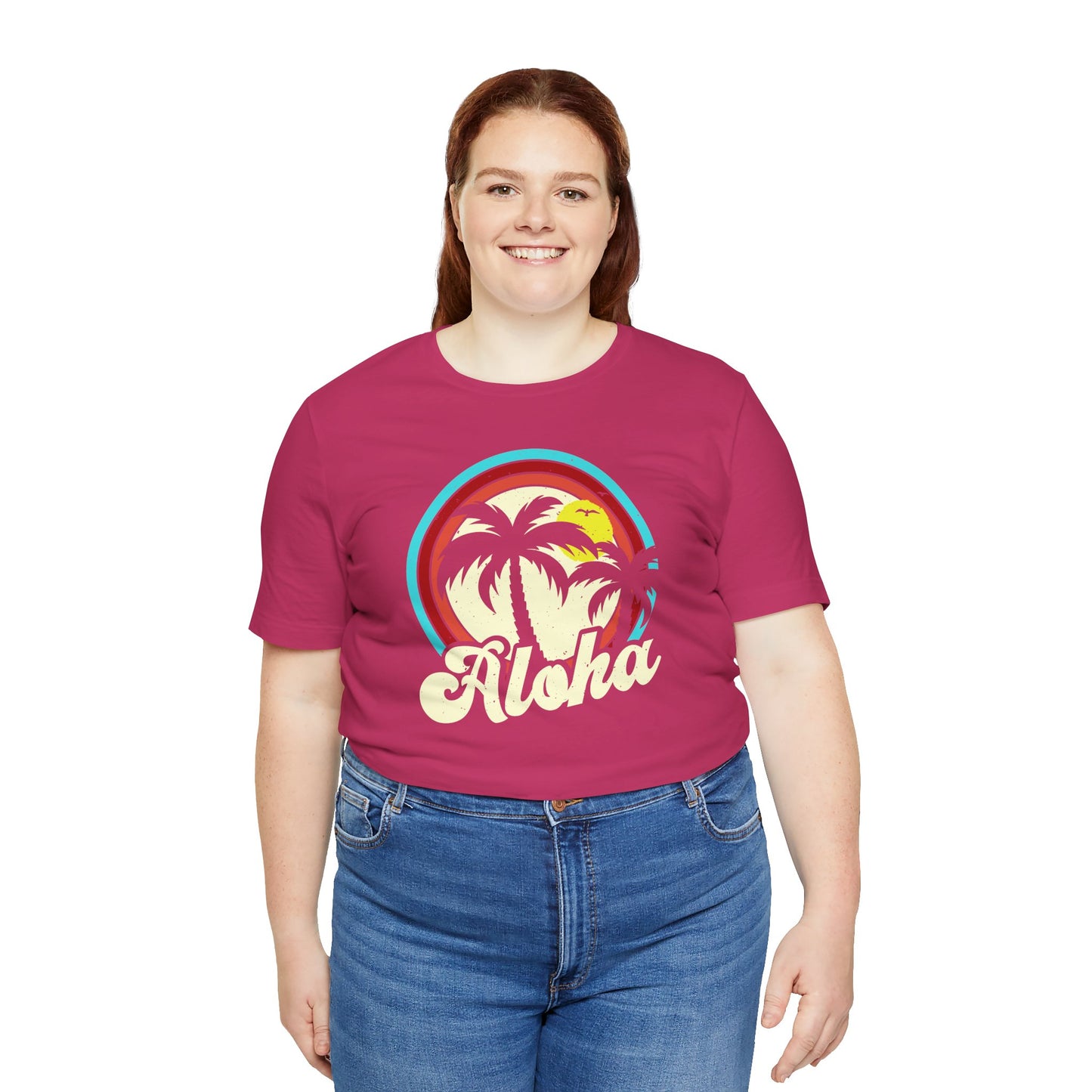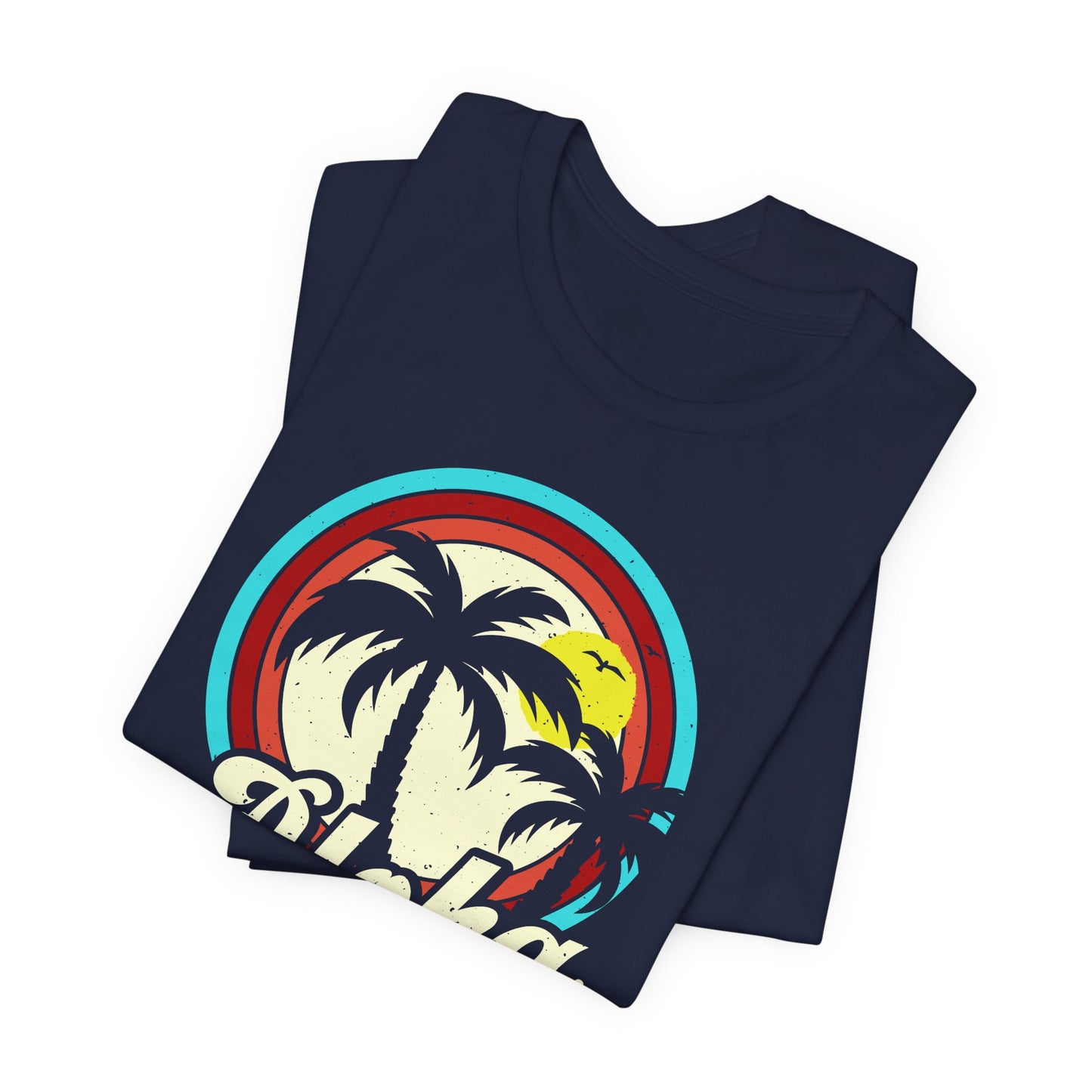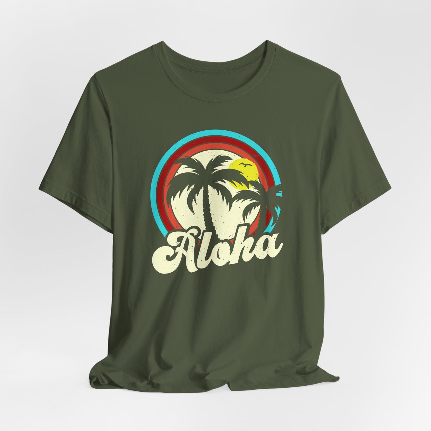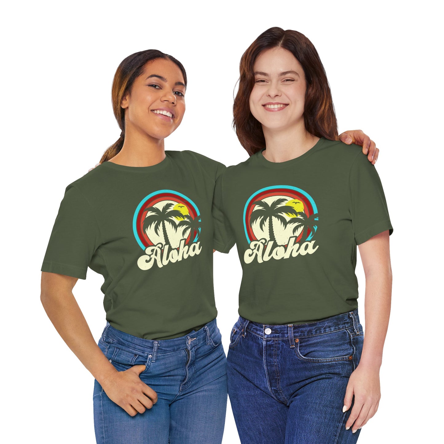 🌞🌴 Aloha — Funky Cream Font with Tropical Sunset Vibes! Brighten your day with this eye-catching design featuring "Aloha" in a funky cream font, set against the silhouette of two palm trees and a radiant sun. Surrounding the scene are vibrant blue, red, and orange circles arranged in an almost rainbow-like formation, capturing the warm, colorful spirit of island life. Perfect for those who love tropical style and want to Express Yourself with bold, sunny energy. Part of our Must-Have Merch collection at teeriffic.store, this design brings a fresh splash of coastal cool wherever you go! 🌈🌴☀️✨