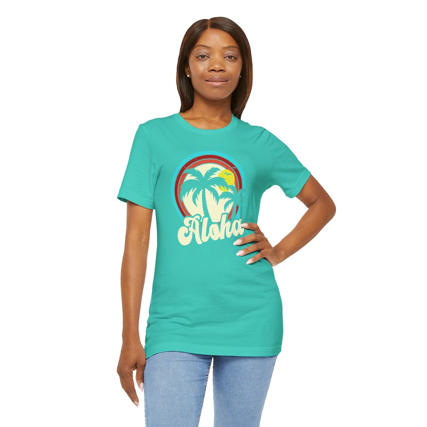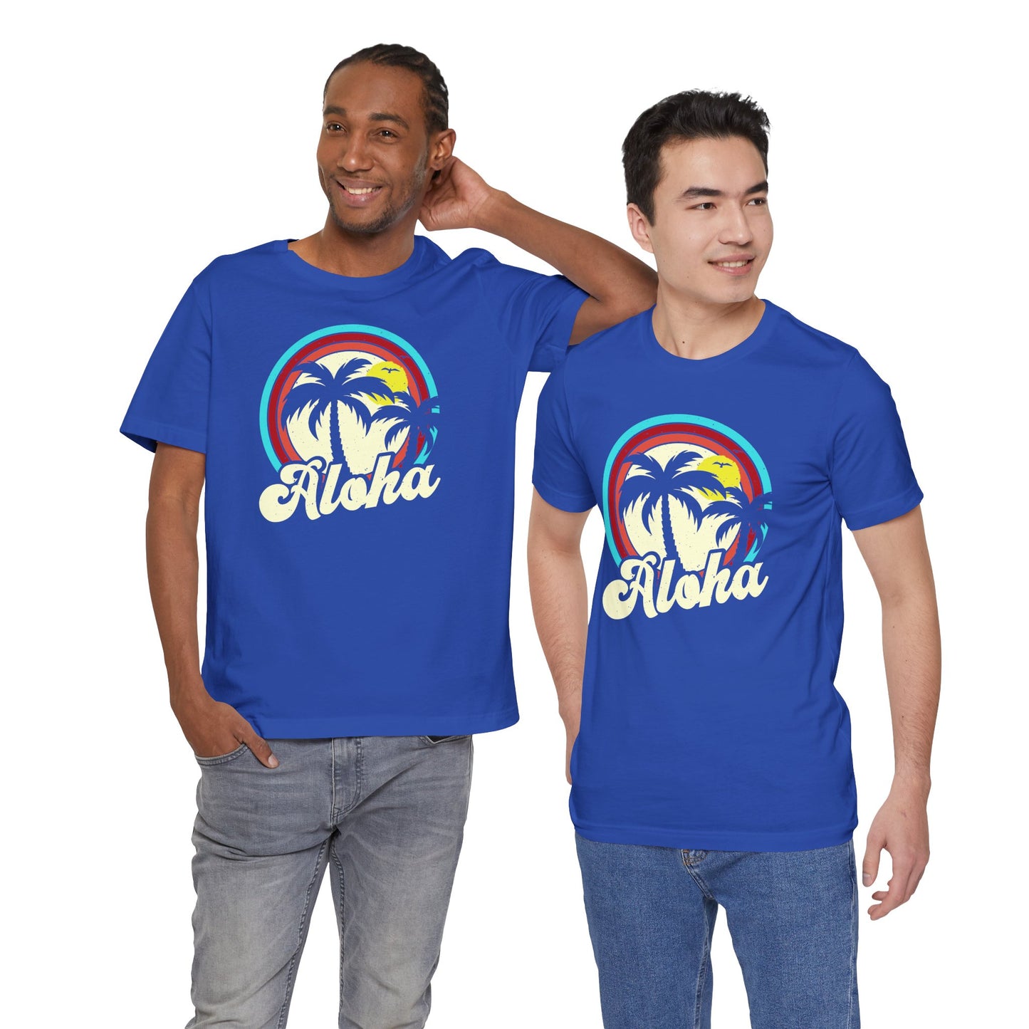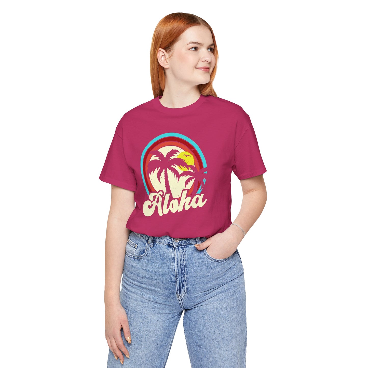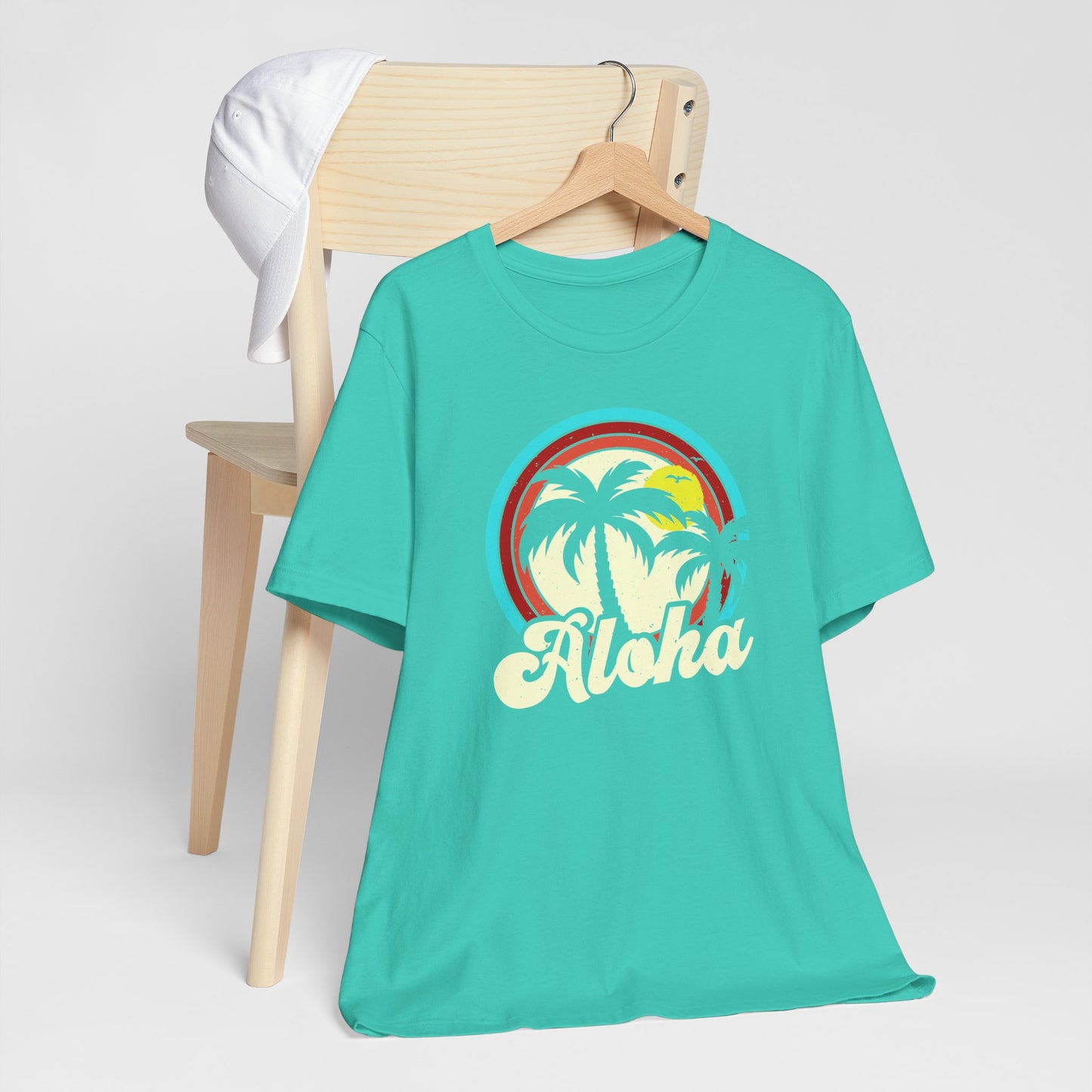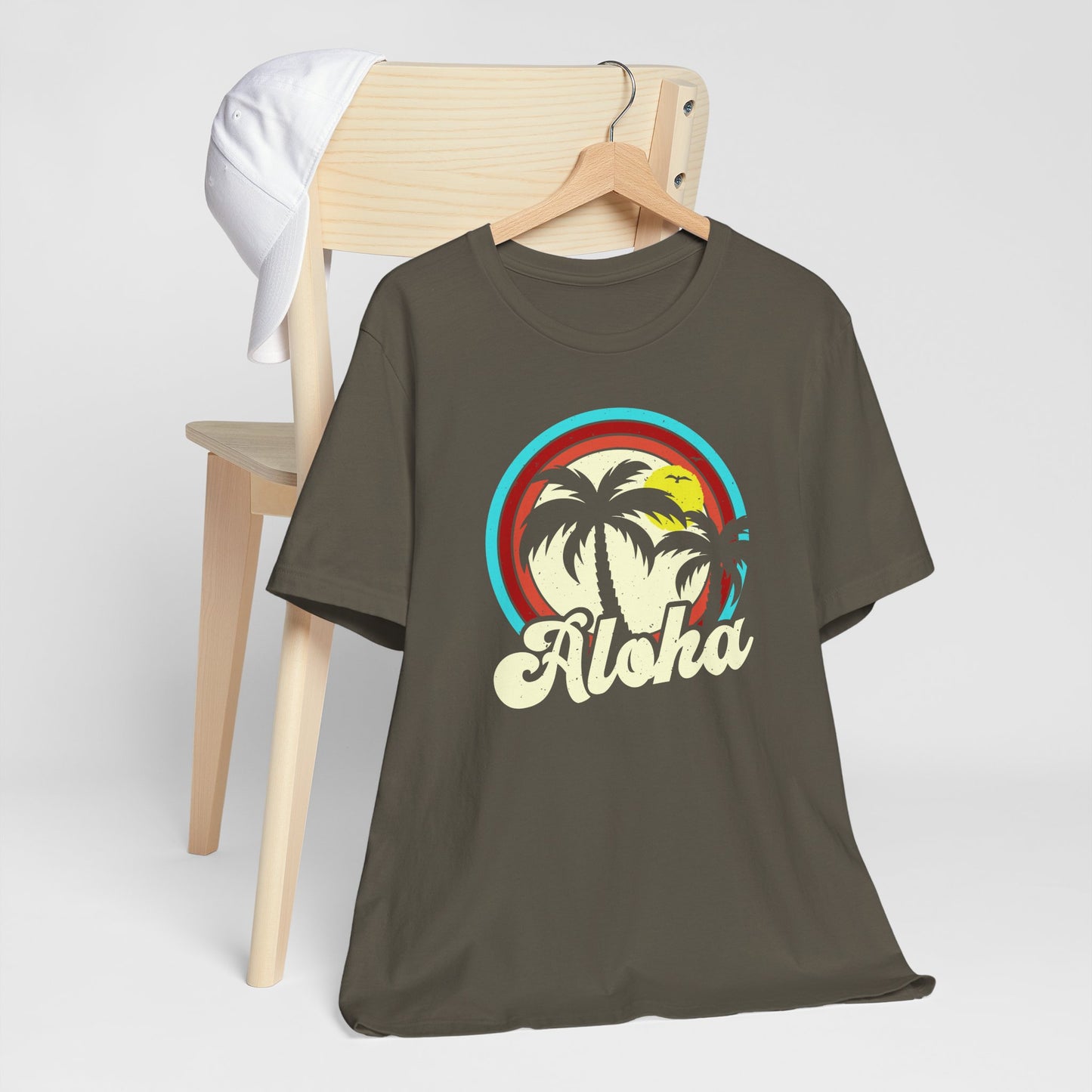 🌞🌴 Aloha — Funky Cream Font with Tropical Sunset Vibes! Brighten your day with this eye-catching design featuring "Aloha" in a funky cream font, set against the silhouette of two palm trees and a radiant sun. Surrounding the scene are vibrant blue, red, and orange circles arranged in an almost rainbow-like formation, capturing the warm, colorful spirit of island life. Perfect for those who love tropical style and want to Express Yourself with bold, sunny energy. Part of our Must-Have Merch collection at teeriffic.store, this design brings a fresh splash of coastal cool wherever you go! 🌈🌴☀️✨