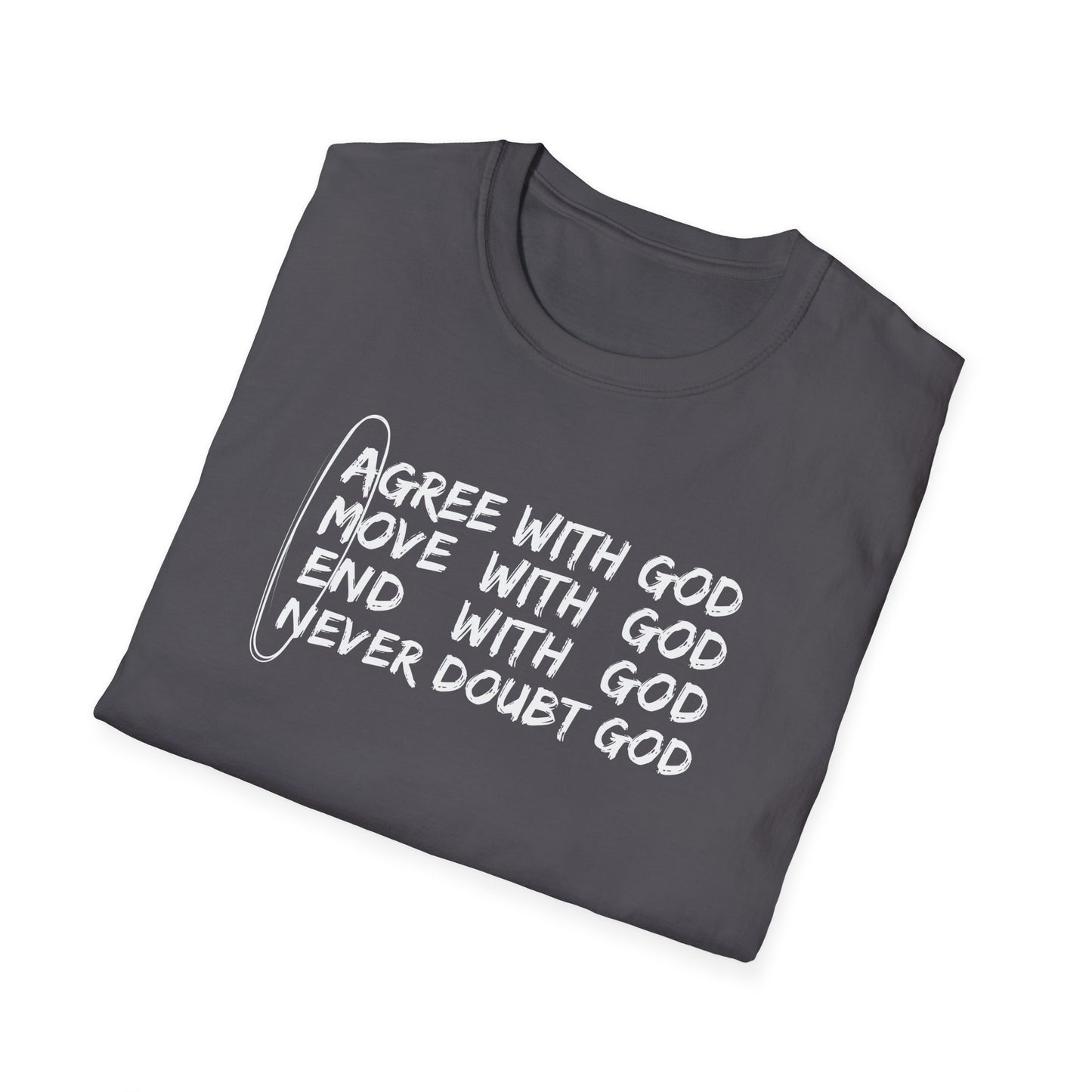 ✝️🌟 Spiritual Harmony! This inspiring design features a powerful message that guides us in our relationship with God: "Agree With God, Move With God, End With God, Never Doubt God." The first letter of each line—A, M, E, N—is creatively circled to spell out the word "Amen," symbolizing affirmation and faith. Perfect for those who want to express their devotion and trust in God, this design combines spiritual guidance with a clever visual element. Grab yours now and let your faith shine! ✨ ✝️