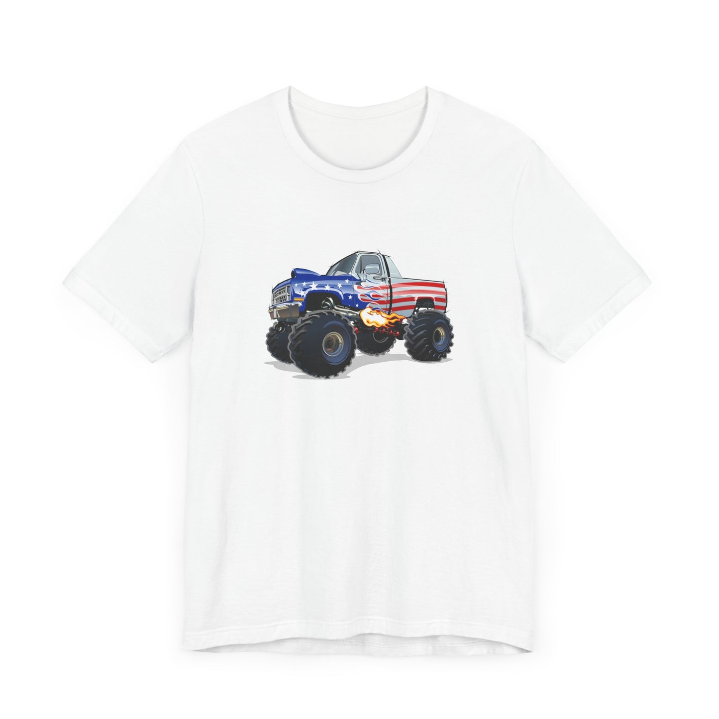 ๐ฅ๐บ๐ธ 1980s Chevrolet C10 Monster Truck โ Flaming Stars & Stripes Power! Ignite your passion for classic American muscle with this bold design featuring a 1980s Chevrolet C10 monster truck decked out in fierce flaming stars and stripes paintwork. With its massive wheels and commanding stance, this truck embodies vintage toughness and patriotic fire, perfect for enthusiasts who love the roar of a monster truck combined with iconic Americana style. Whether youโre hitting the dirt or showing off your pride, this design is a standout from our Must-Have Merch collection at teeriffic.store. Express Yourself and blaze your own trail with this fiery tribute to a legendary classic!๐ฅโญ๏ธ