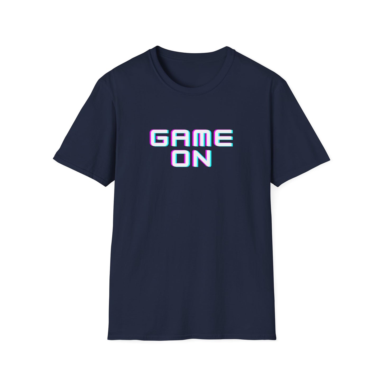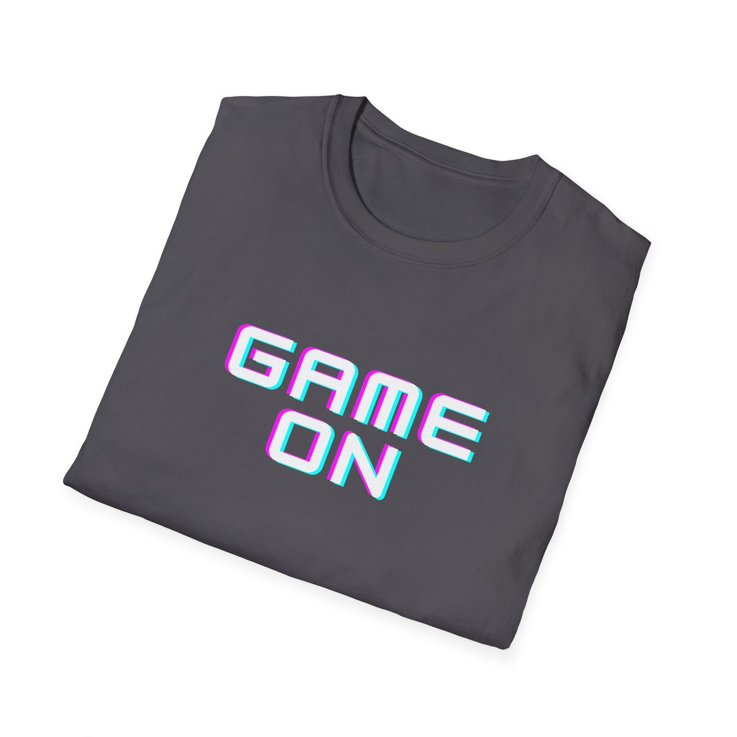 🎮💻 Glitching into High Gear! This electrifying t-shirt features the phrase "GAME ON" in a bold, glitch-style font, surrounded by vibrant pink and light blue shadows. Perfect for gamers who are always ready to level up, this design combines futuristic style with a competitive spirit. Grab yours now and get ready to glitch your way to victory! 🚀👾