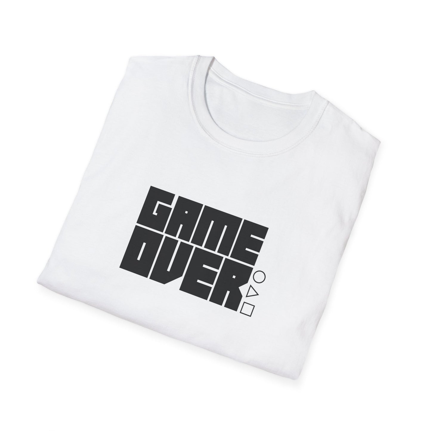 🎮🔥 Retro-Futuristic Showdown! This futuristic t-shirt features the iconic phrase "GAME OVER" in a bold, retro-futuristic font, accompanied by the legendary game controller icons: square, triangle, and circle. Perfect for gamers who love the nostalgic vibe of classic PlayStation consoles, this design combines retro charm with a futuristic twist. Grab yours now and let everyone know that when the game is over, it's time to reboot and play again! 🚀👾