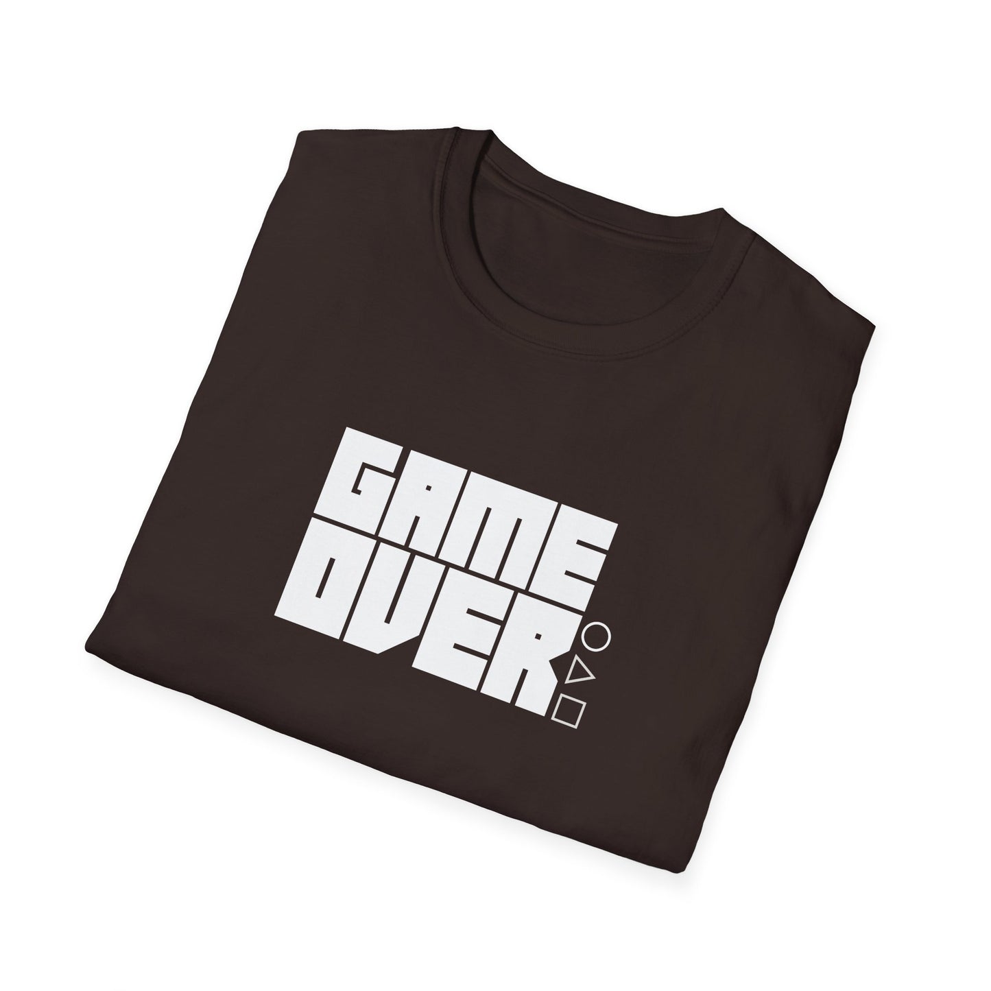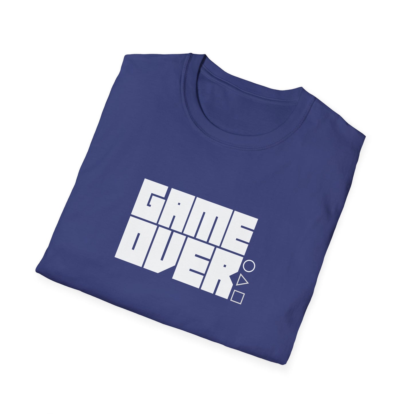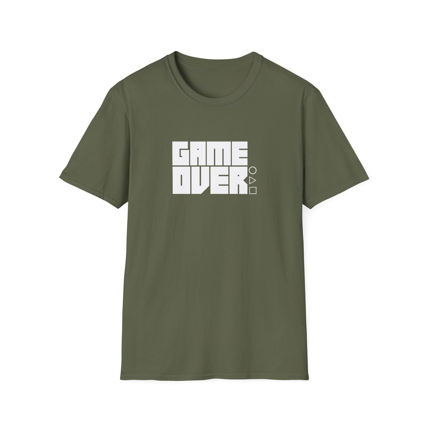 🎮🔥 Retro-Futuristic Showdown! This futuristic t-shirt features the iconic phrase "GAME OVER" in a bold, retro-futuristic font, accompanied by the legendary game controller icons: square, triangle, and circle. Perfect for gamers who love the nostalgic vibe of classic PlayStation consoles, this design combines retro charm with a futuristic twist. Grab yours now and let everyone know that when the game is over, it's time to reboot and play again! 🚀👾