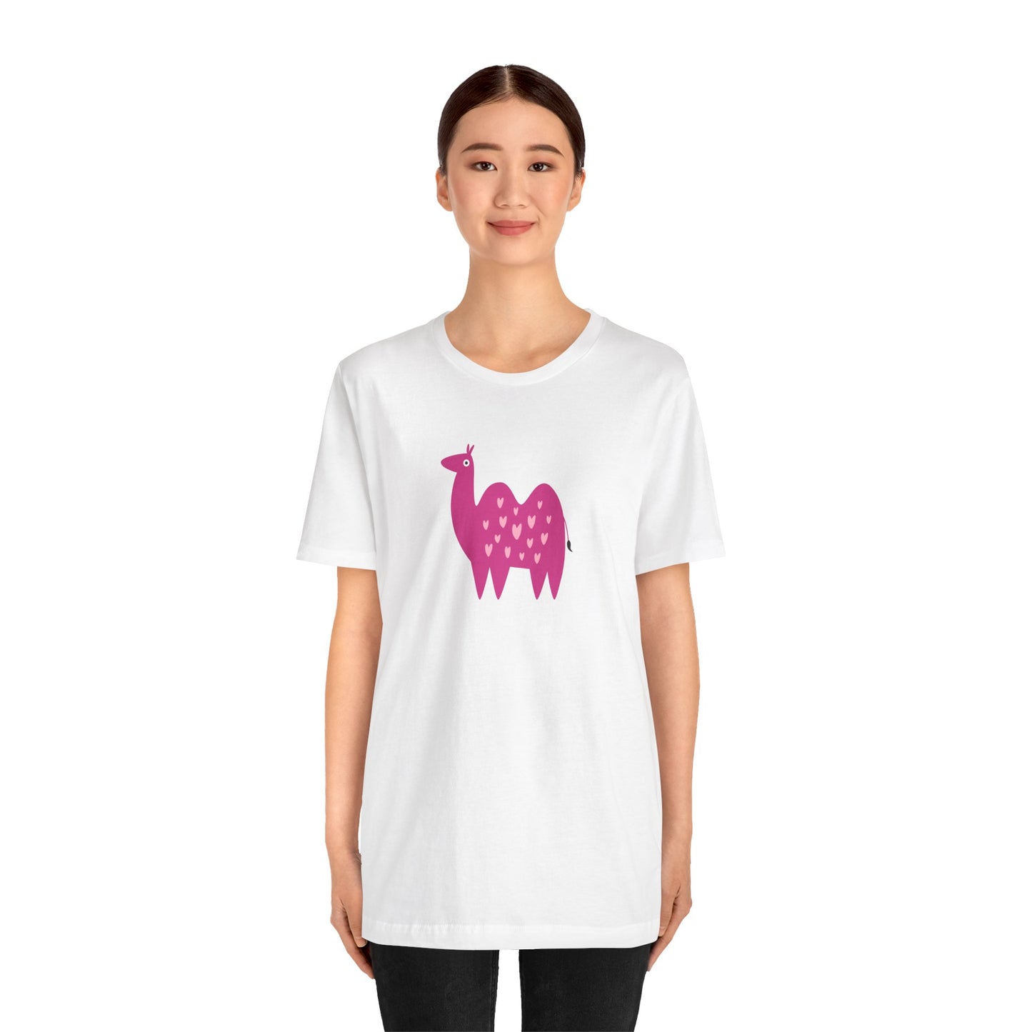 Adorably Quirky Pink Camel With Hearts Unisex Jersey Short Sleeve Tee