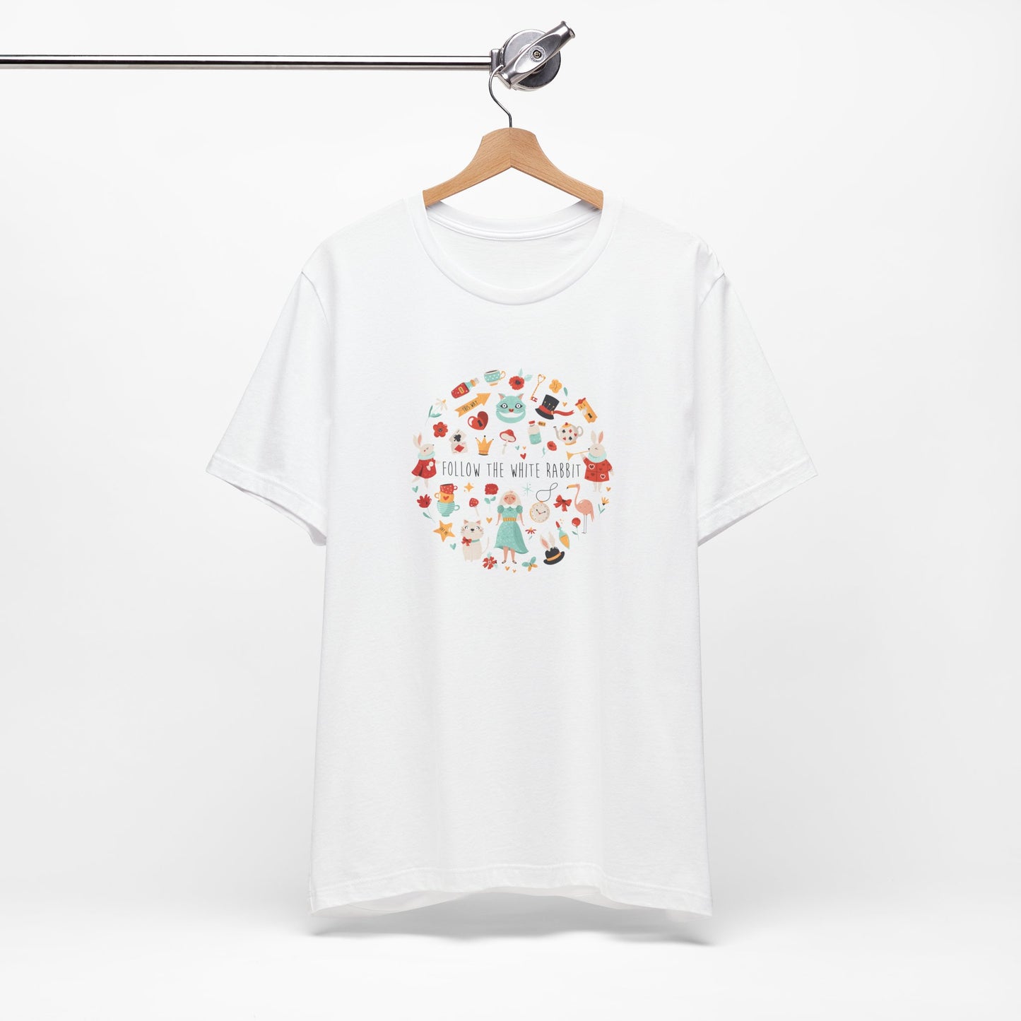 Follow The White Rabbit Alice In Wonderland Inspired Unisex Jersey Short Sleeve Tee
