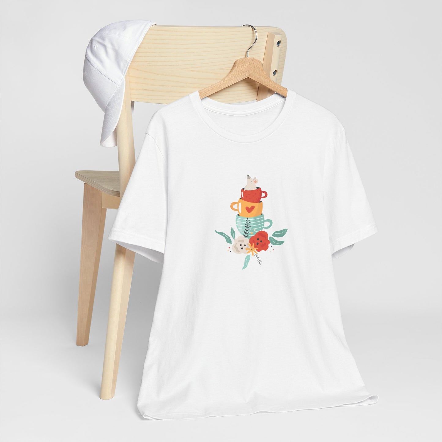 🍵🐭 Whimsical Tea Time! This delightful design features a gorgeous Alice in Wonderland inspired artwork of three tea cups stacked one on top of the other, with a playful mouse peeking out of the top cup. Perfect for those who love fantasy and whimsical themes, this design combines elegance with a touch of mischief. Whether you're looking to decorate your space, wear it on a t-shirt, or gift it to someone special, this design is sure to bring a smile and celebrate the joy of savoring life's simple pleasures. Grab yours now and join the Mad Hatter's tea party! ✨🎉