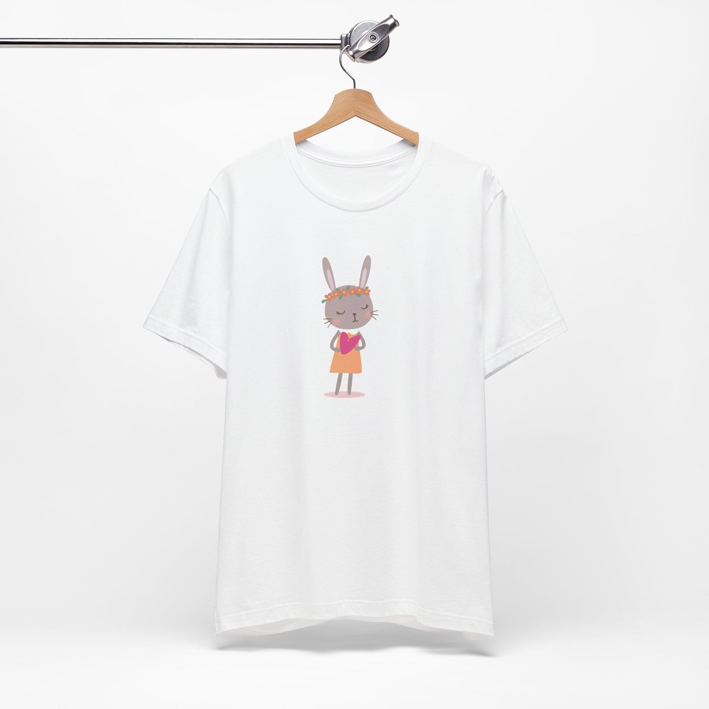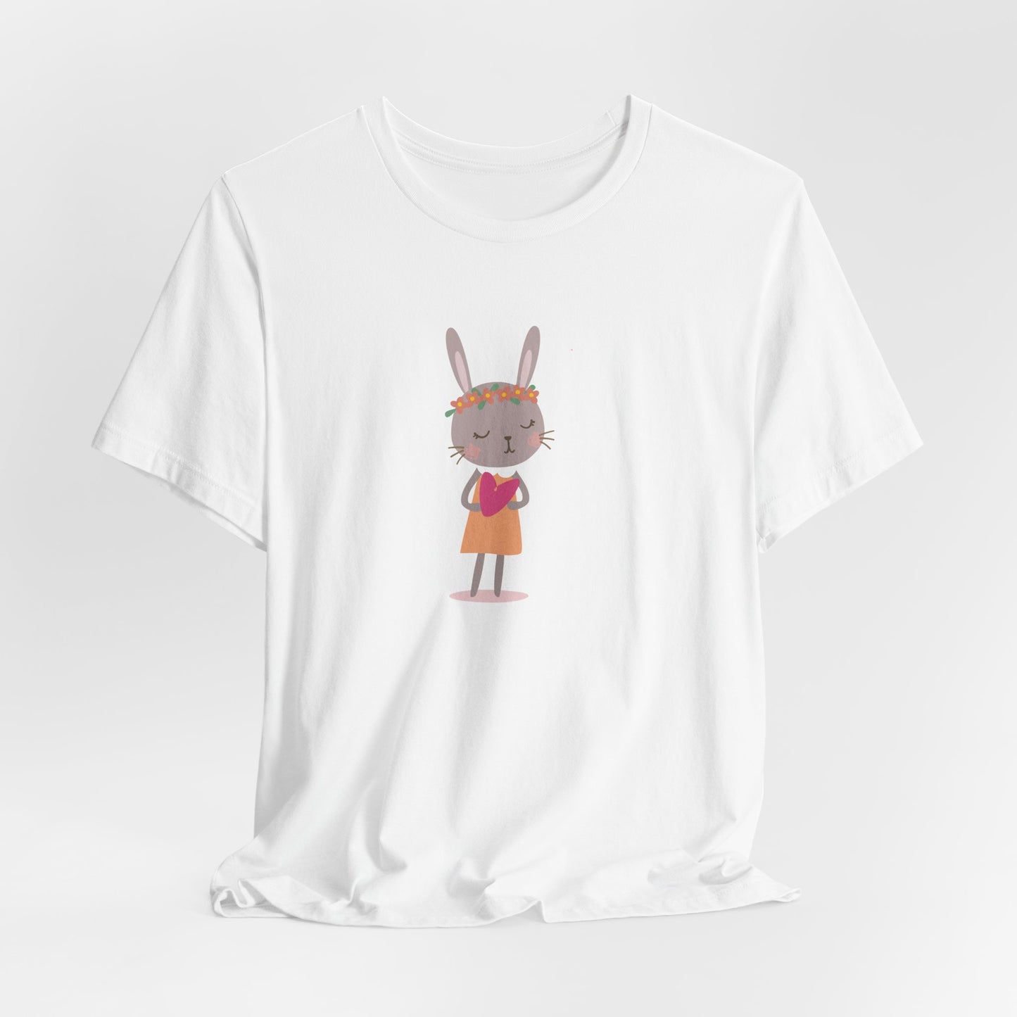 Bunny Love Whimsical Girl Rabbit with Spring Flowers Unisex Jersey Short Sleeve Tee