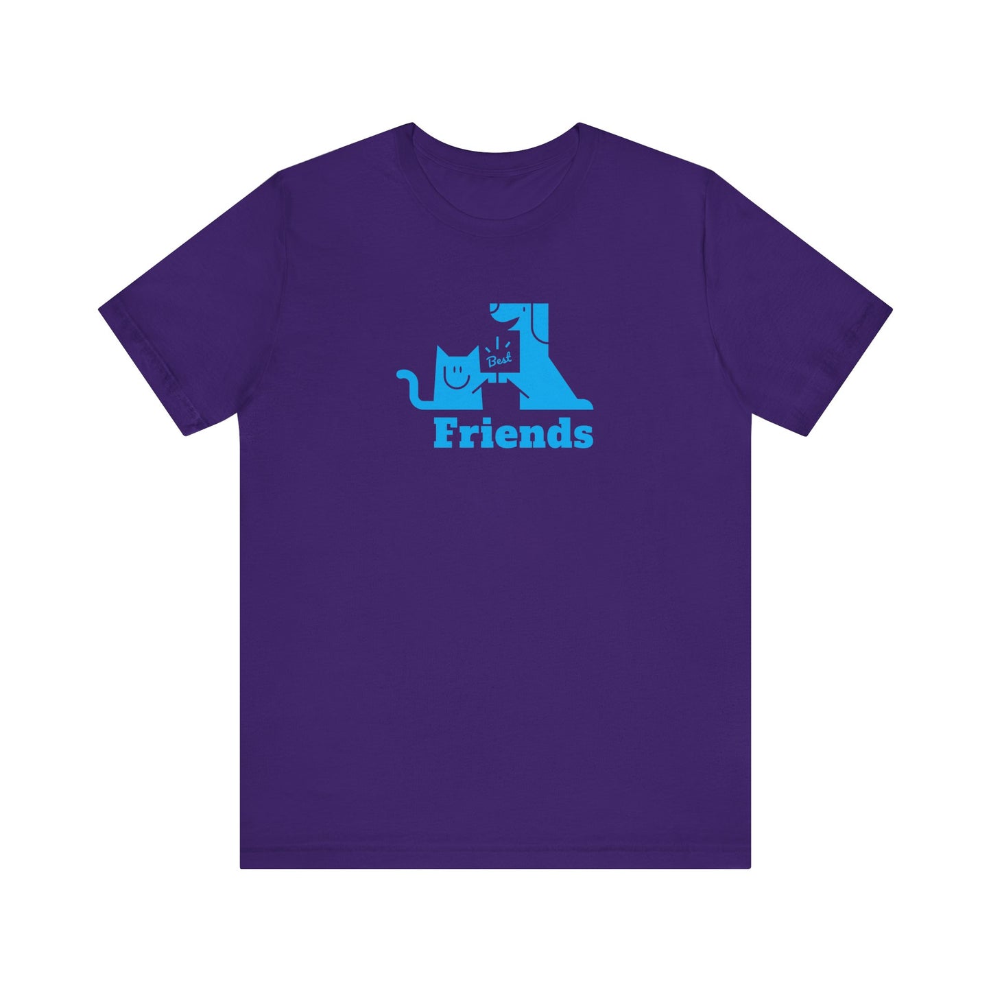 Cat & Dog Hi-5 Each Other Best Friends Blue Print Unisex Jersey Short Sleeve Tee