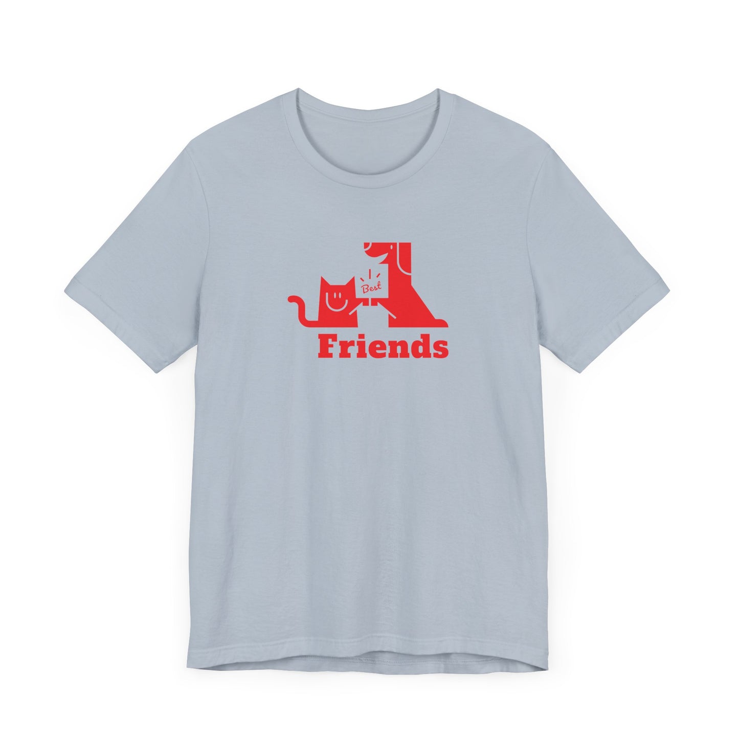 Cat & Dog Hi-5 Each Other Best Friends Red Print Unisex Jersey Short Sleeve Tee