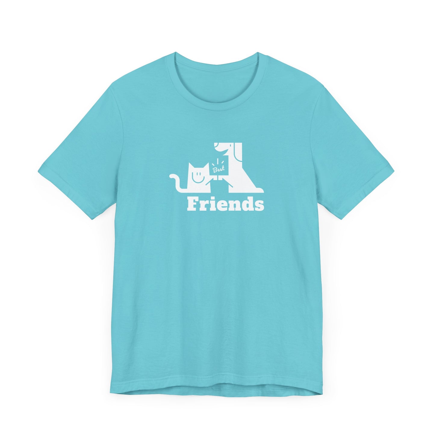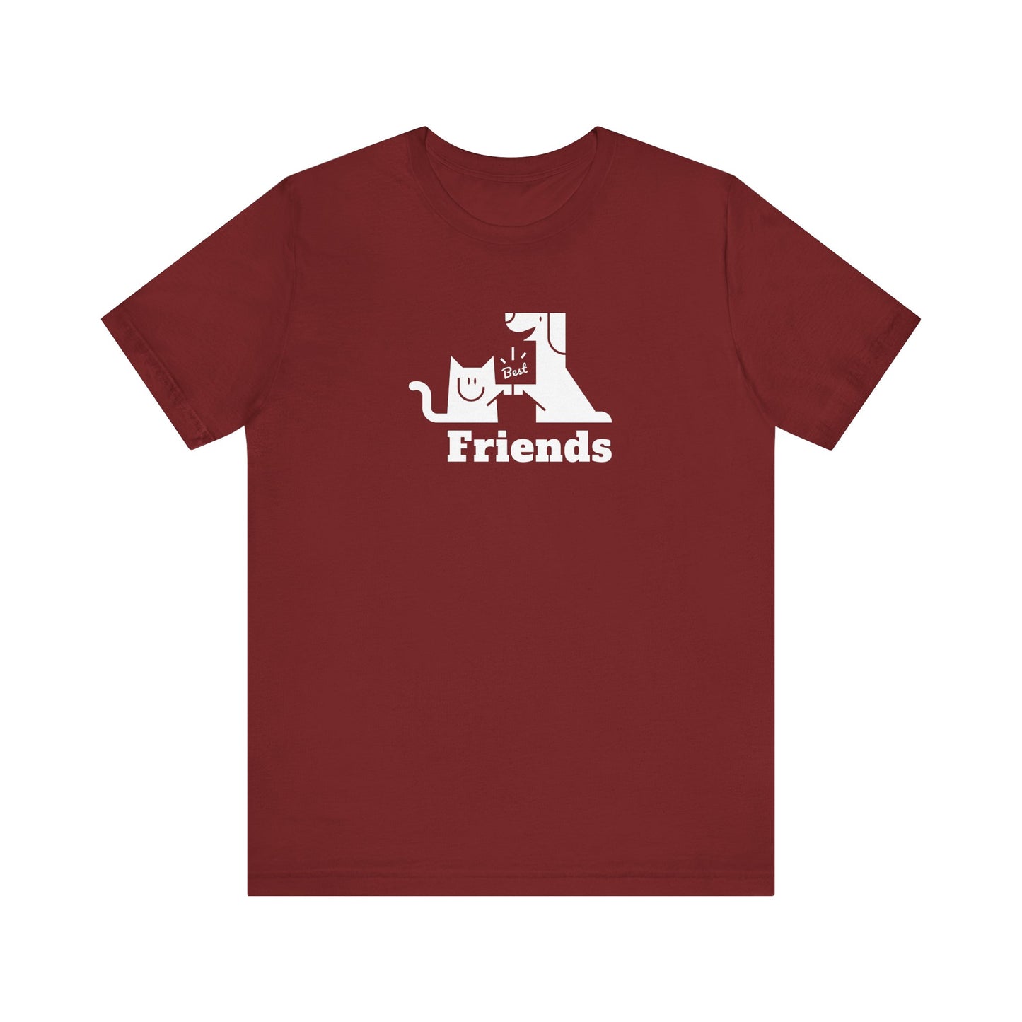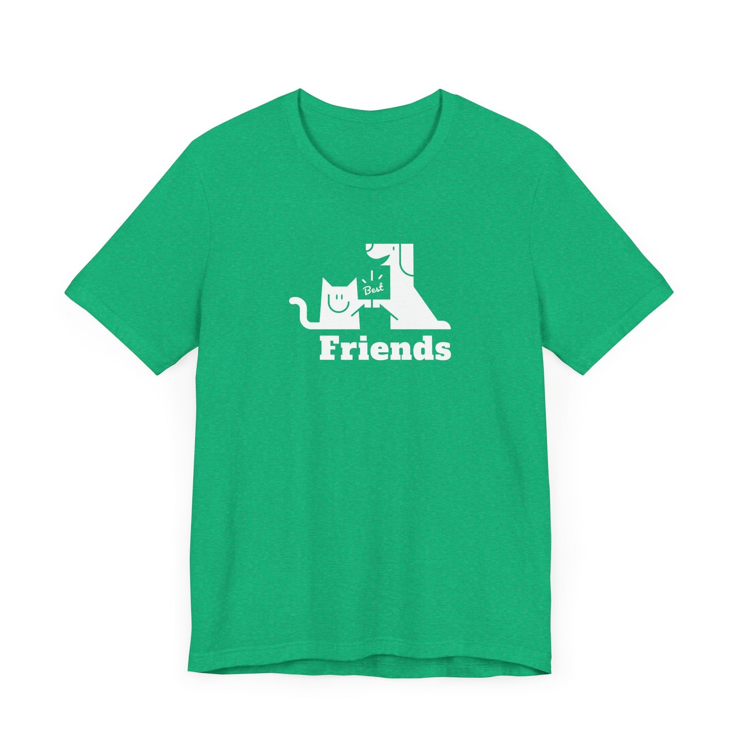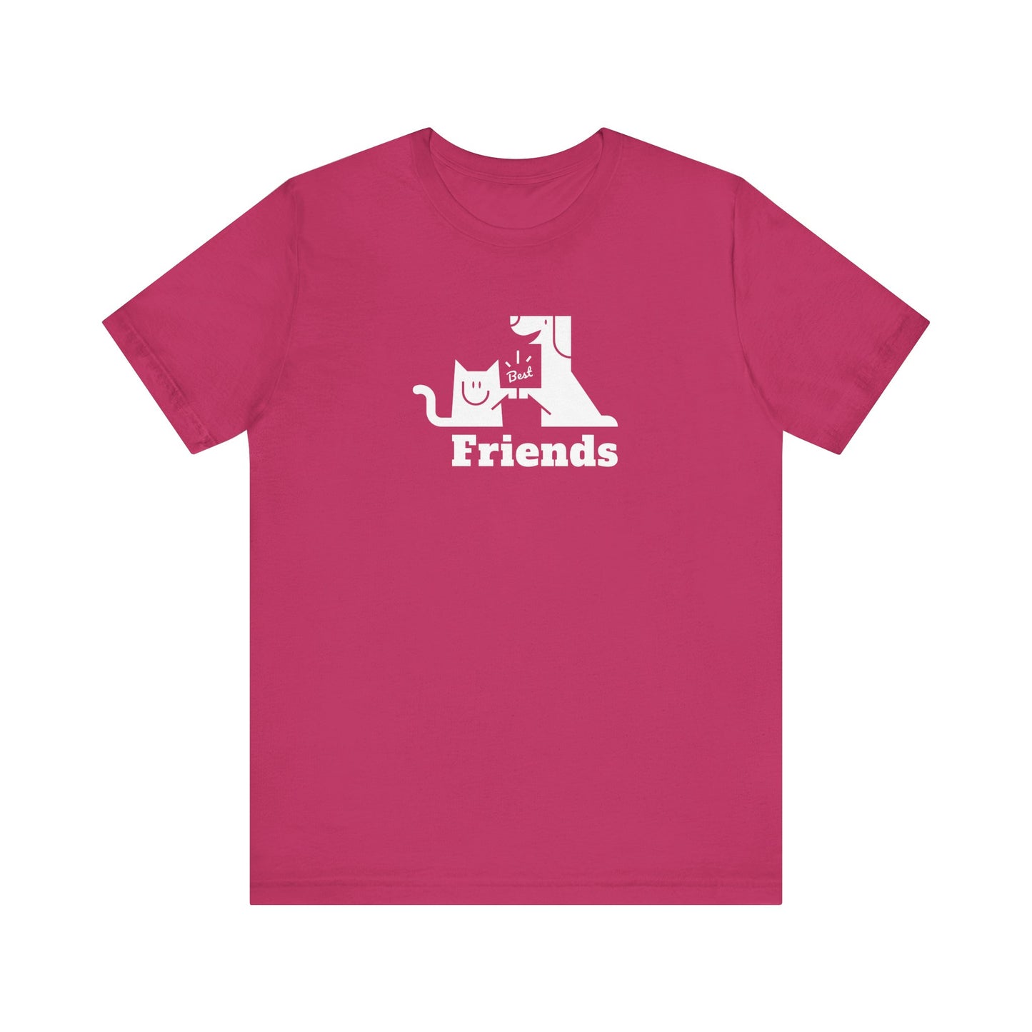 Gorgeous cartoon illustration of a cat and dog hi-5-ing each other with their little paws with the quote "Best Friends" in white print. Friendship is a beautiful bond that often transcends boundaries. It's a connection based on trust, loyalty, and mutual respect.