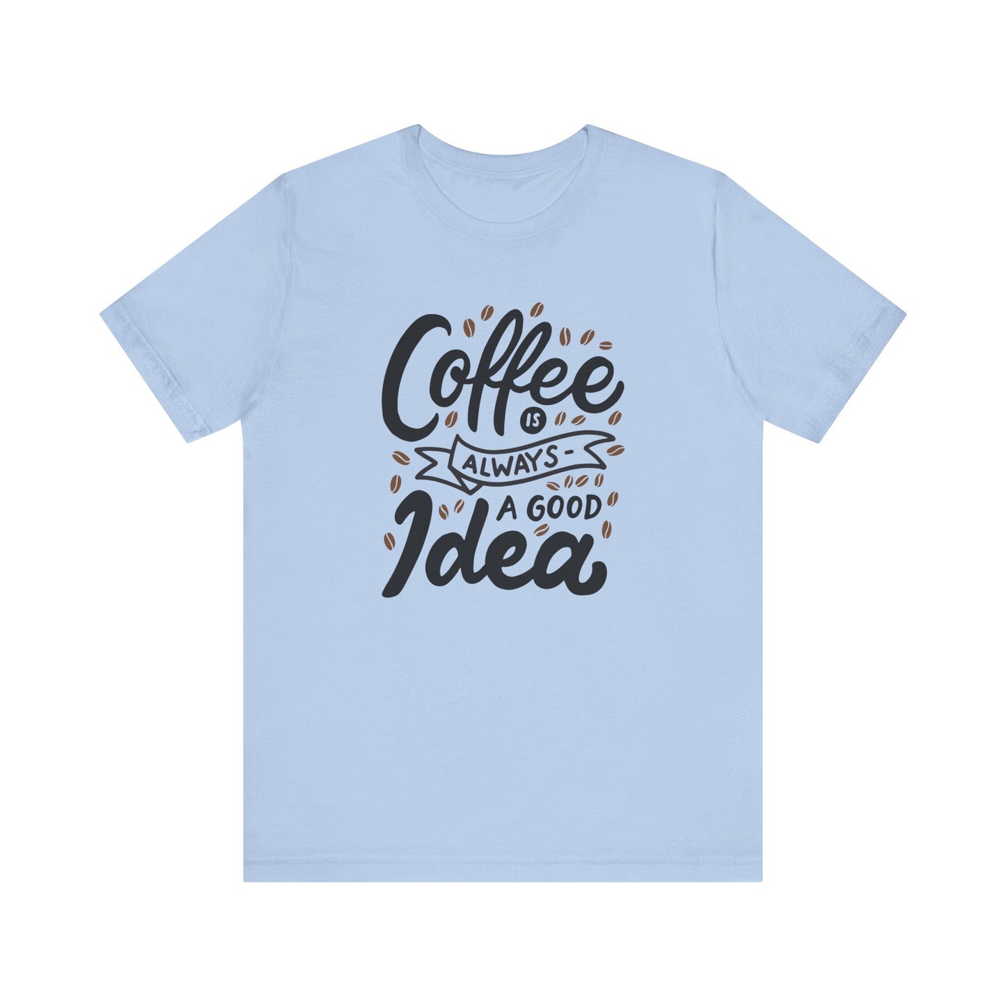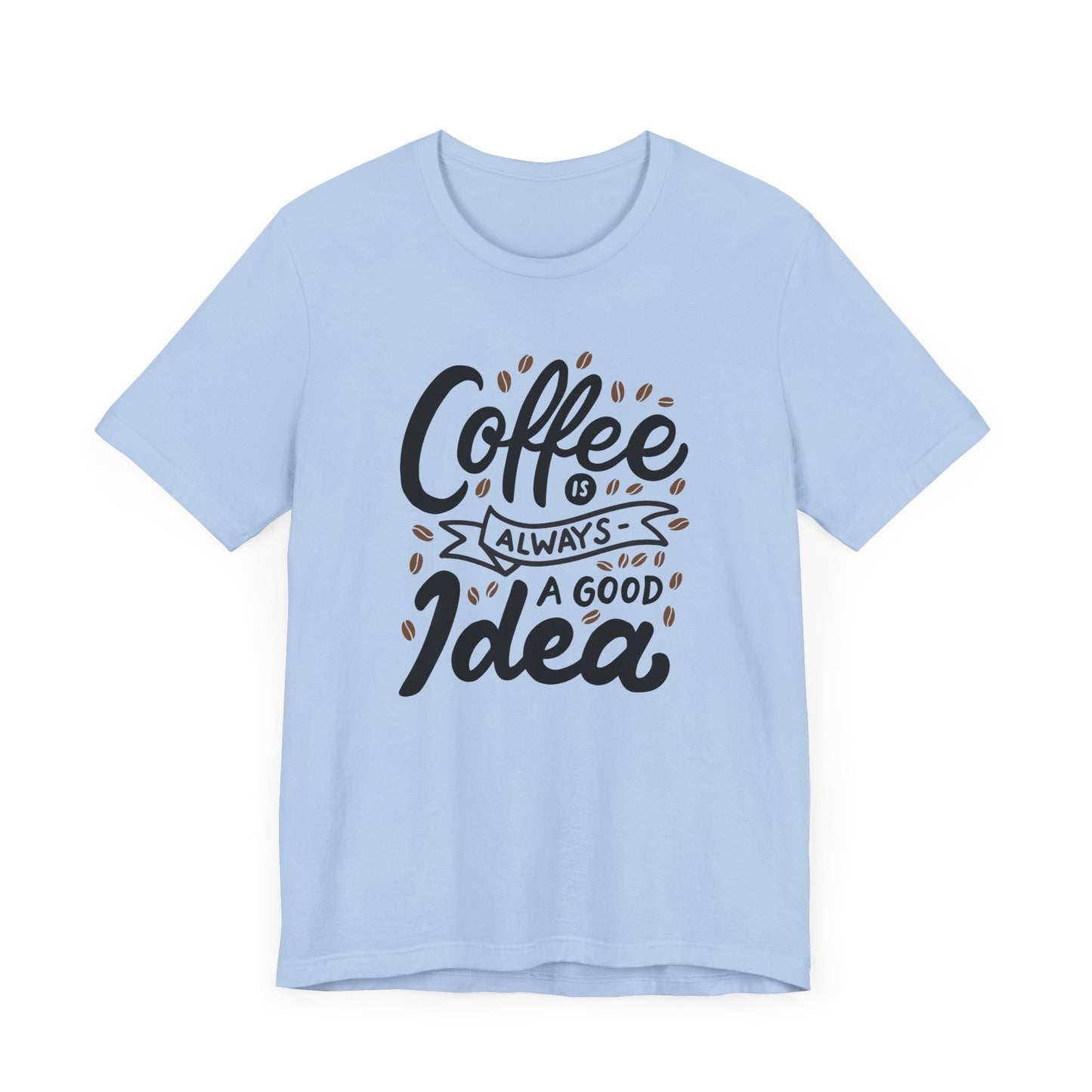 Introducing our 'Coffee is Always a Good Idea' t-shirt - the perfect blend of style and caffeine love. Whether you're a latte lover, espresso enthusiast, or just need that morning pick-me-up, this tee is brewed to perfection. Embrace your inner coffee connoisseur with this cozy, quirky shirt that declares your love for all things caffeinated. It's a must-have for every coffee addict out there. Grab yours now and let the world know that with coffee in hand, anything is possible. Because let's face it, when in doubt, coffee it out.