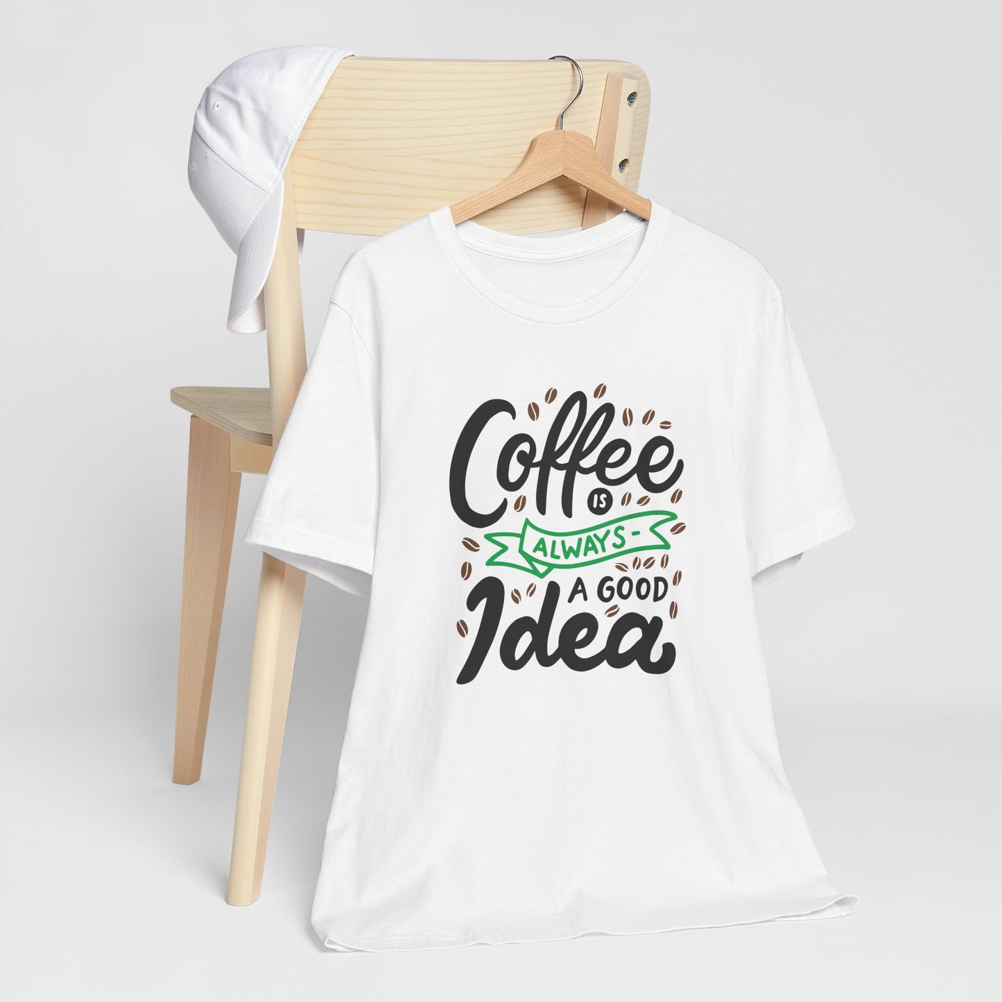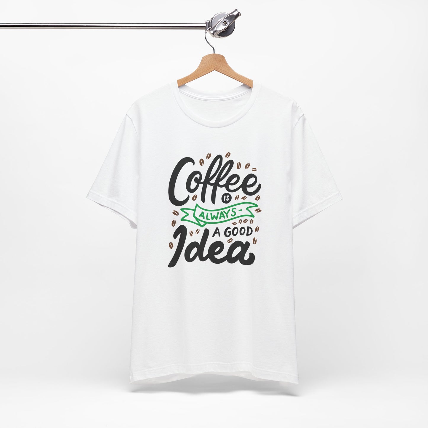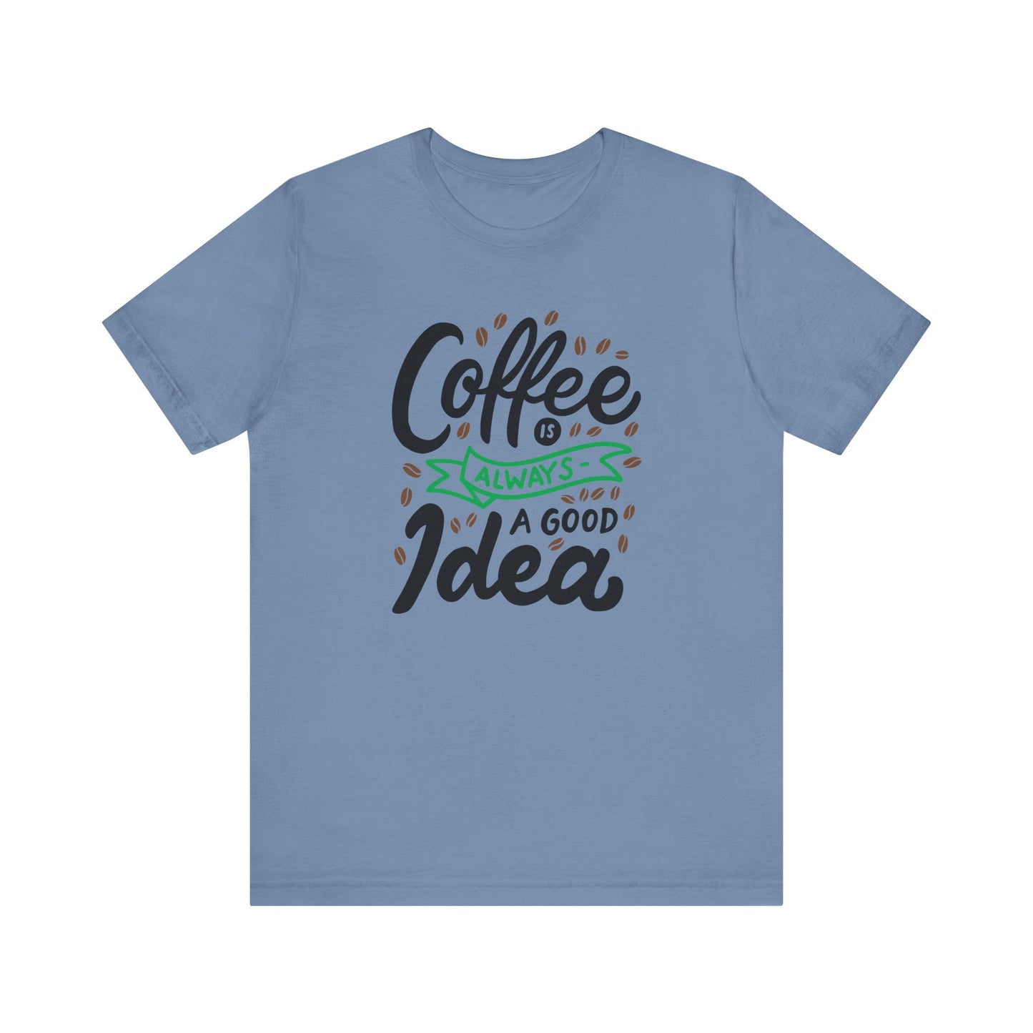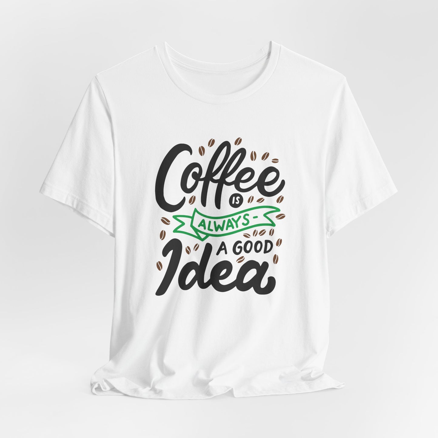 Introducing our 'Coffee is Always a Good Idea' t-shirt - the perfect blend of style and caffeine love. Whether you're a latte lover, espresso enthusiast, or just need that morning pick-me-up, this tee is brewed to perfection. Embrace your inner coffee connoisseur with this cozy, quirky shirt that declares your love for all things caffeinated. It's a must-have for every coffee addict out there. Grab yours now and let the world know that with coffee in hand, anything is possible. Because let's face it, when in doubt, coffee it out.