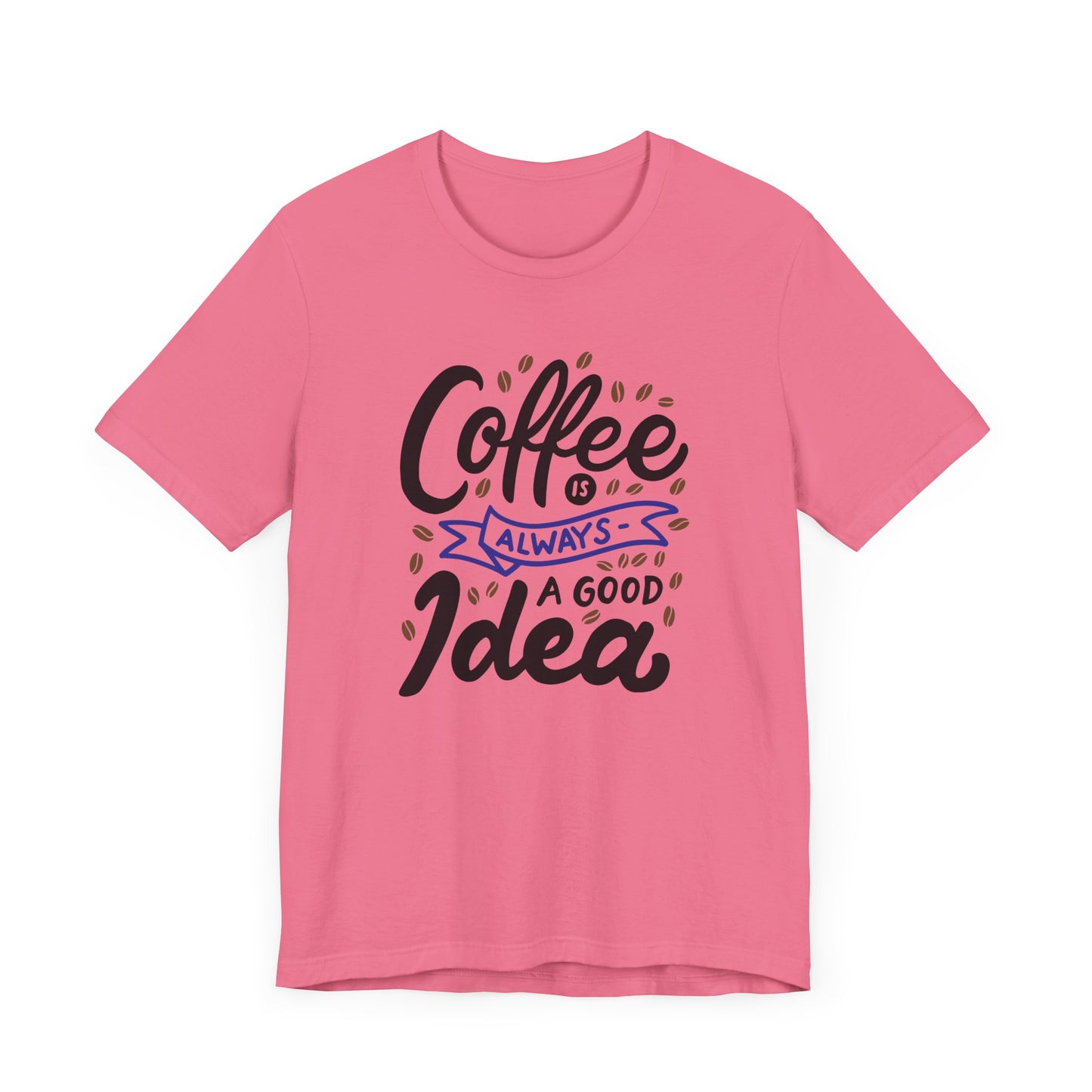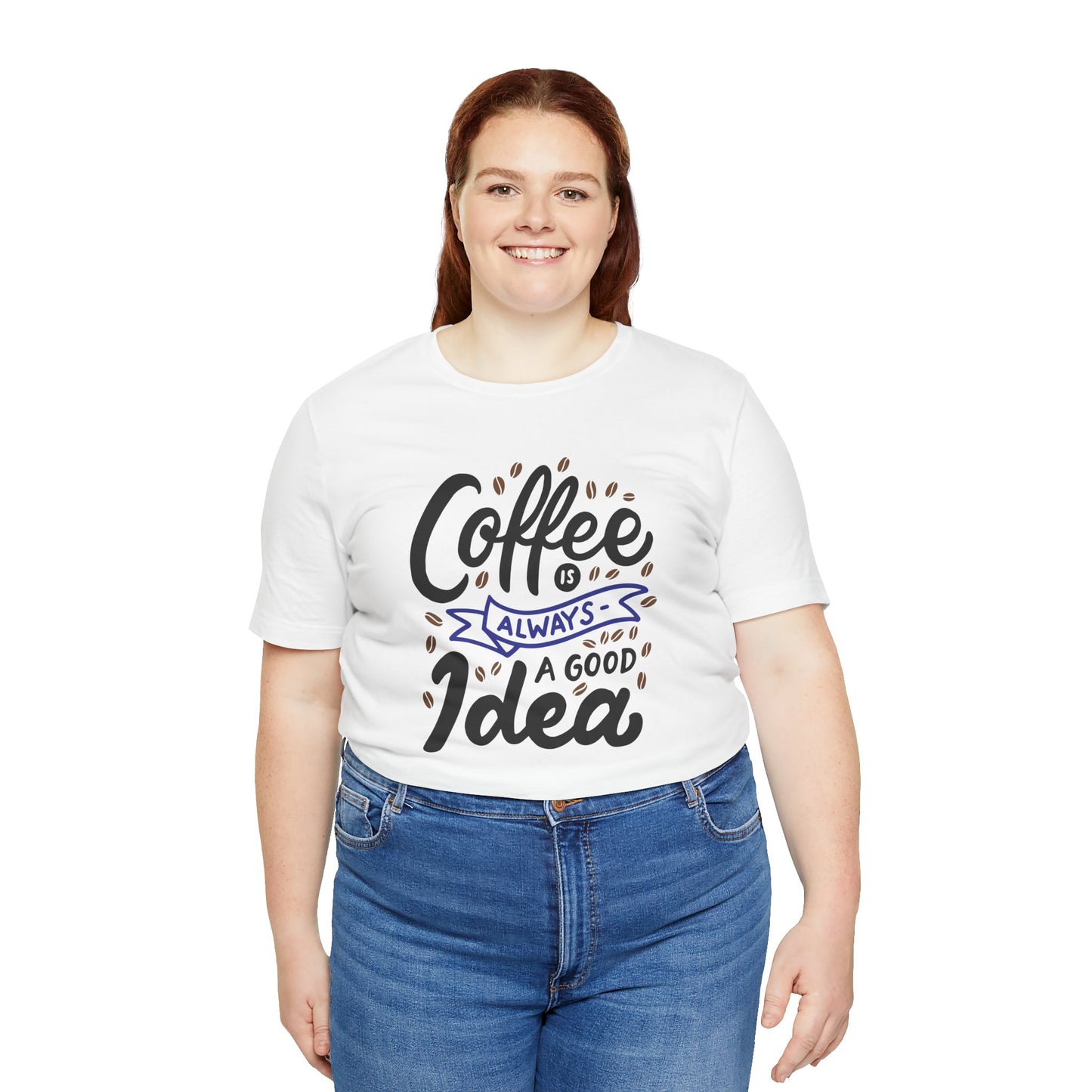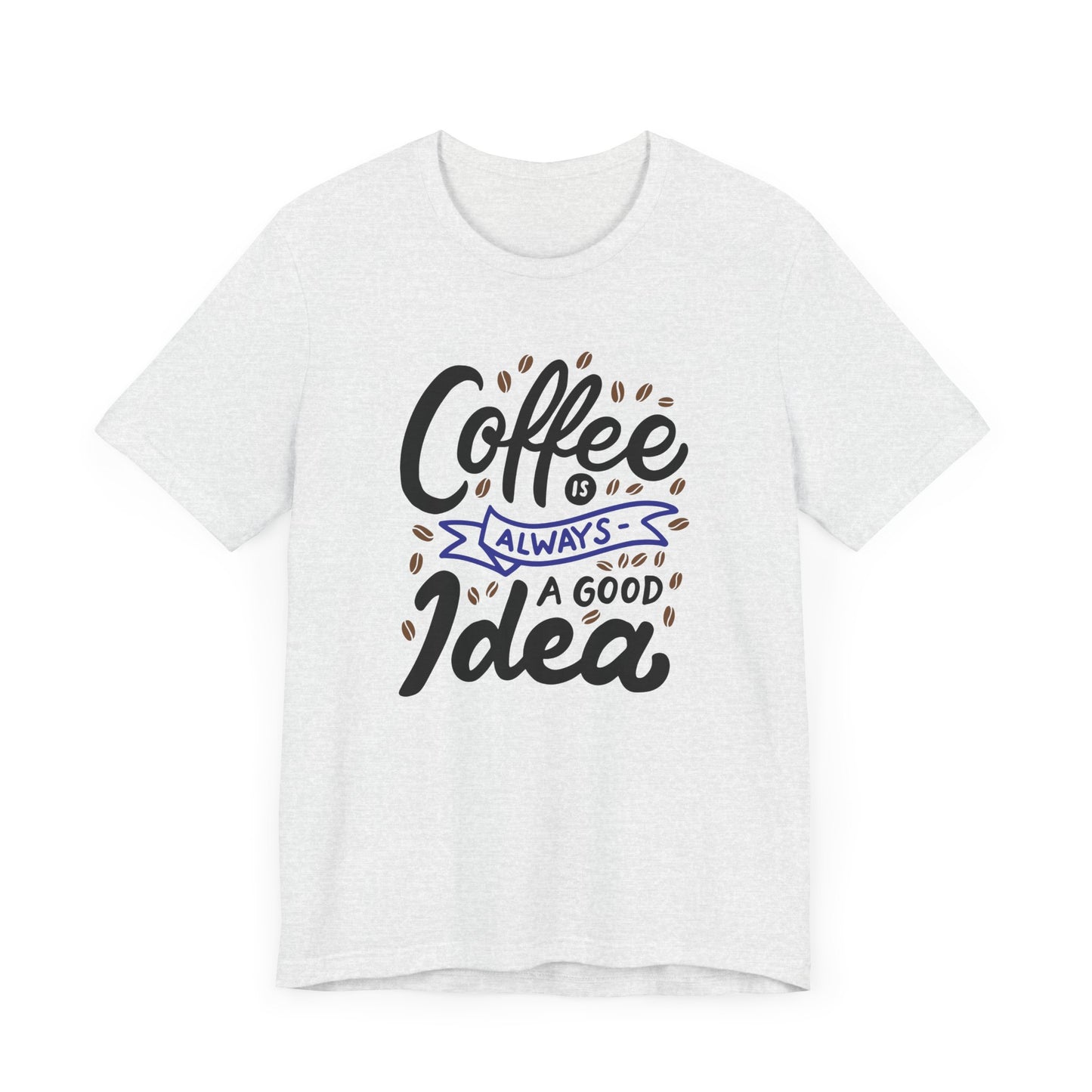 Introducing our 'Coffee is Always a Good Idea' t-shirt - the perfect blend of style and caffeine love. Whether you're a latte lover, espresso enthusiast, or just need that morning pick-me-up, this tee is brewed to perfection. Embrace your inner coffee connoisseur with this cozy, quirky shirt that declares your love for all things caffeinated. It's a must-have for every coffee addict out there. Grab yours now and let the world know that with coffee in hand, anything is possible. Because let's face it, when in doubt, coffee it out.