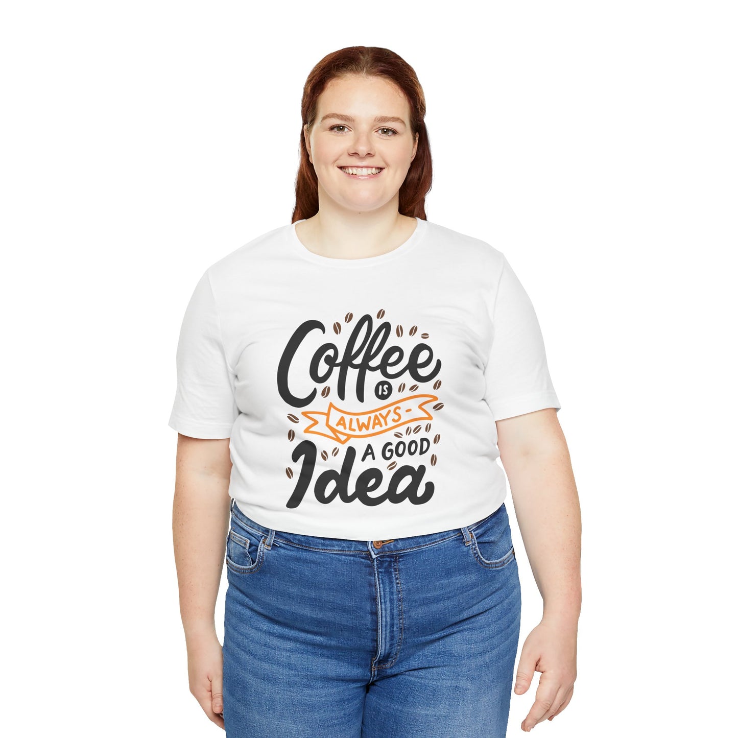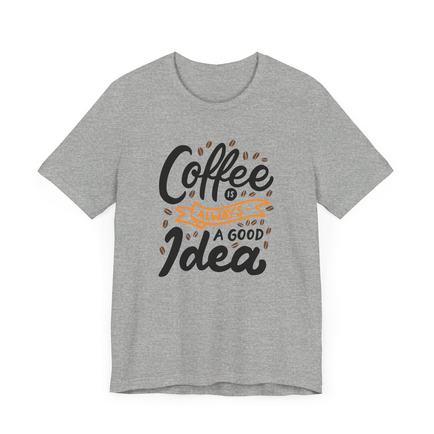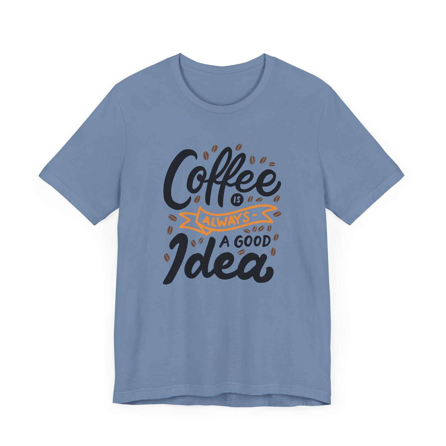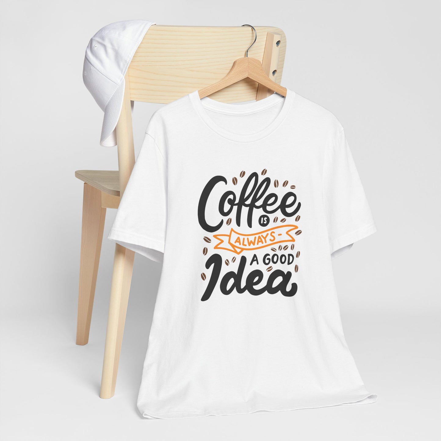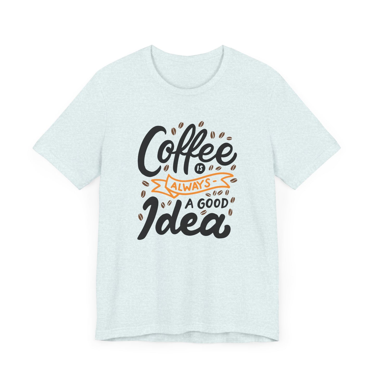 Introducing our 'Coffee is Always a Good Idea' t-shirt - the perfect blend of style and caffeine love. Whether you're a latte lover, espresso enthusiast, or just need that morning pick-me-up, this tee is brewed to perfection. Embrace your inner coffee connoisseur with this cozy, quirky shirt that declares your love for all things caffeinated. It's a must-have for every coffee addict out there. Grab yours now and let the world know that with coffee in hand, anything is possible. Because let's face it, when in doubt, coffee it out.