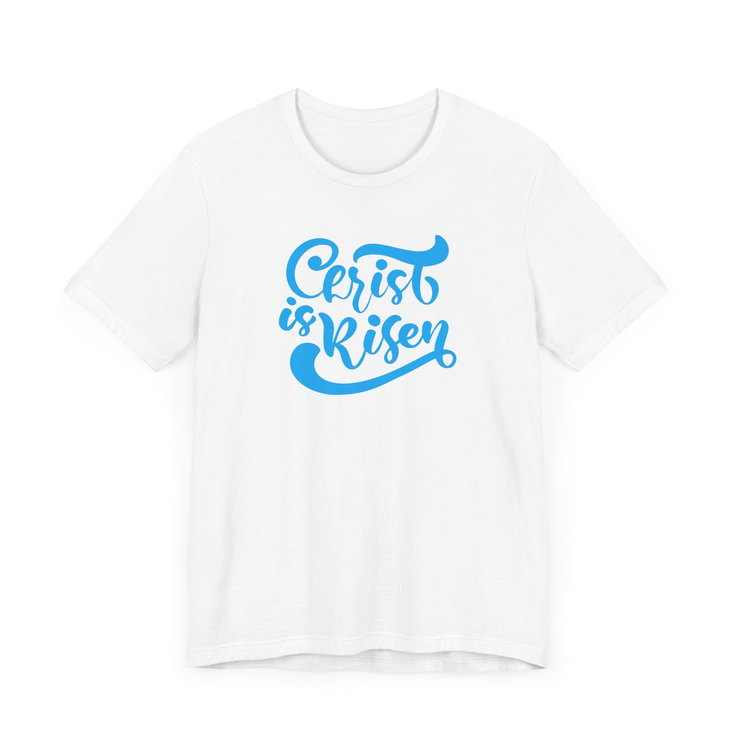 Christ is Risen Blue Print Unisex Jersey Short Sleeve Tee