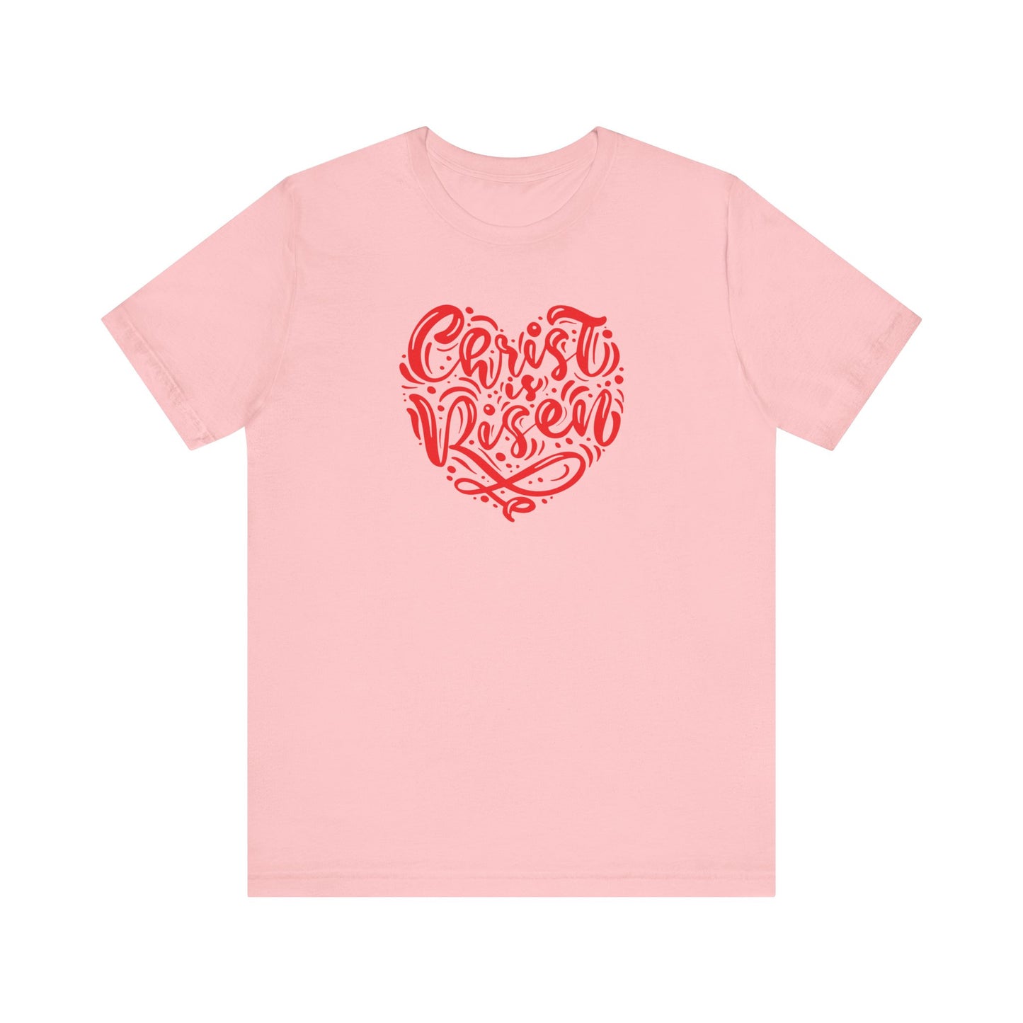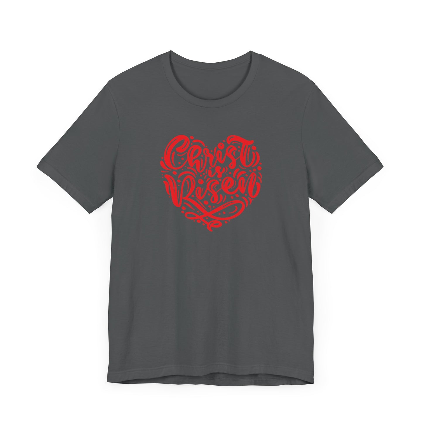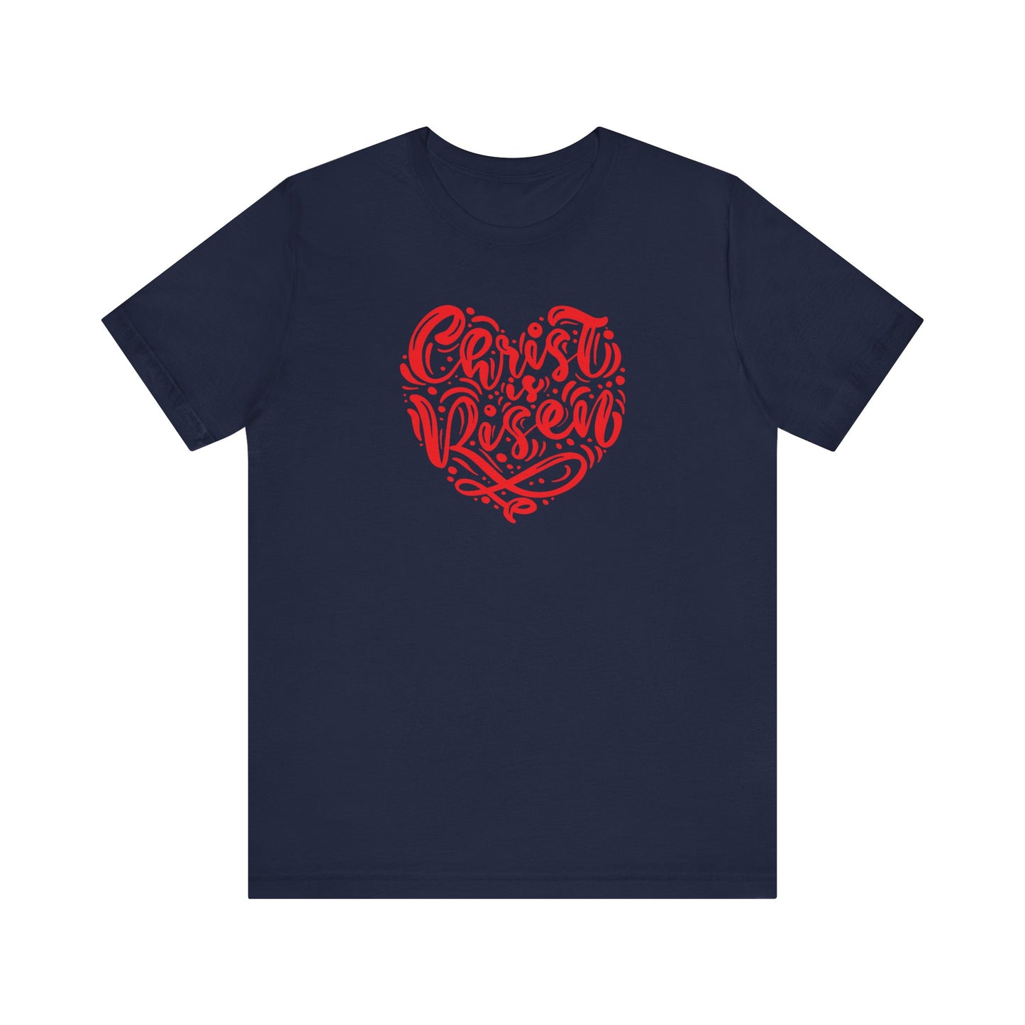 Christ is Risen Heart Shaped Red Print Unisex Jersey Short Sleeve Tee