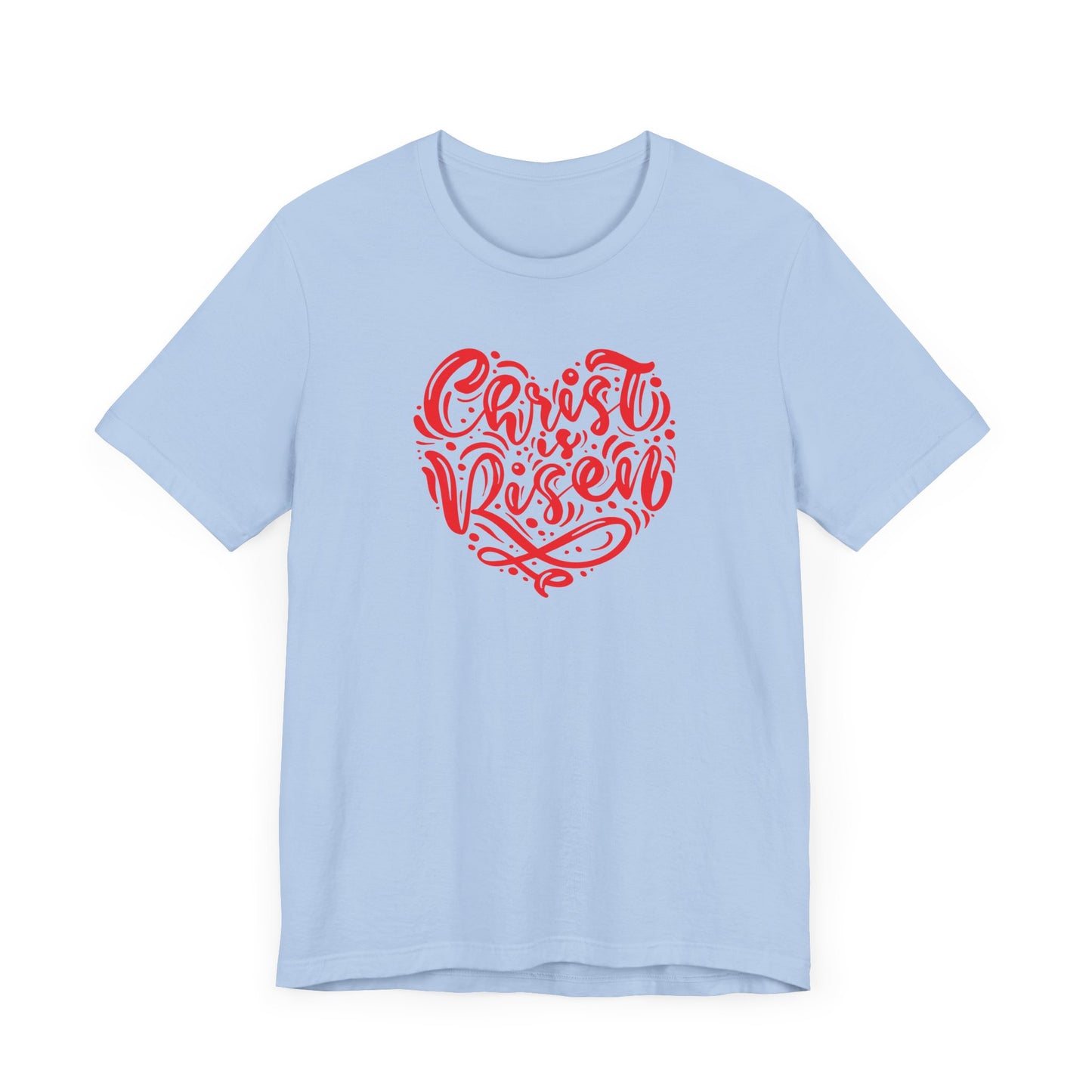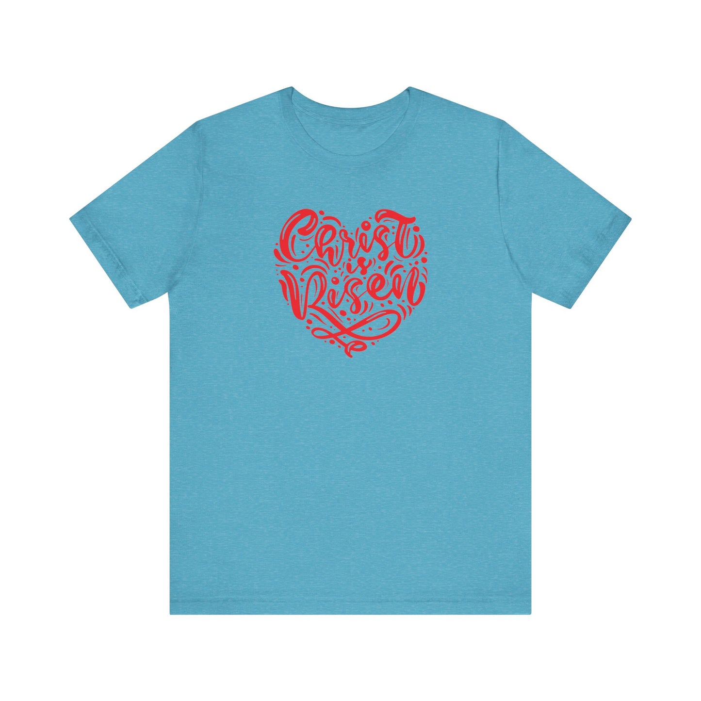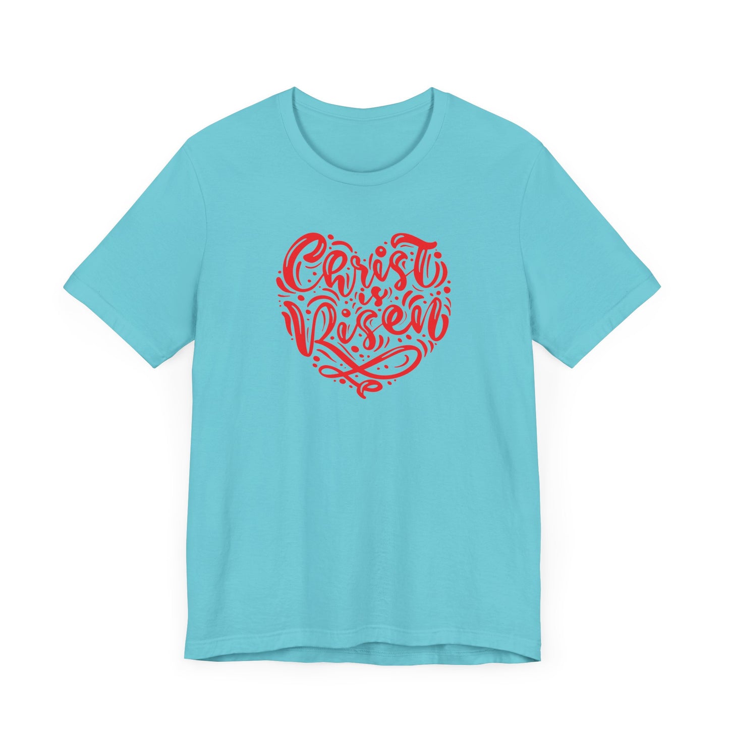 Christ is Risen Heart Shaped Red Print Unisex Jersey Short Sleeve Tee